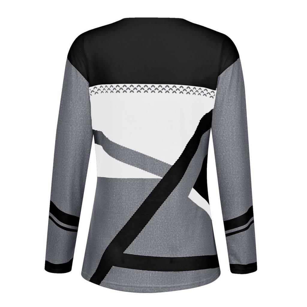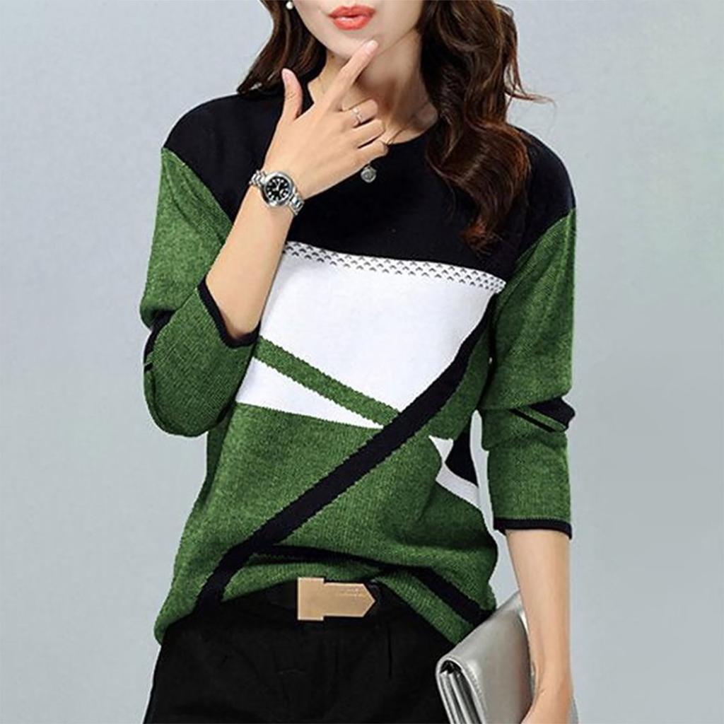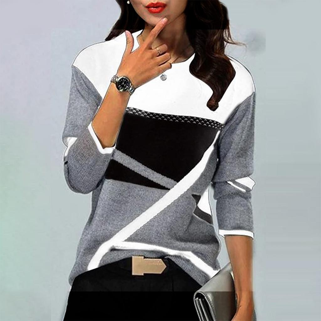 Женская зимняя мода с контрастным позиционированием с принтом с круглым вырезом и длинным рукавом