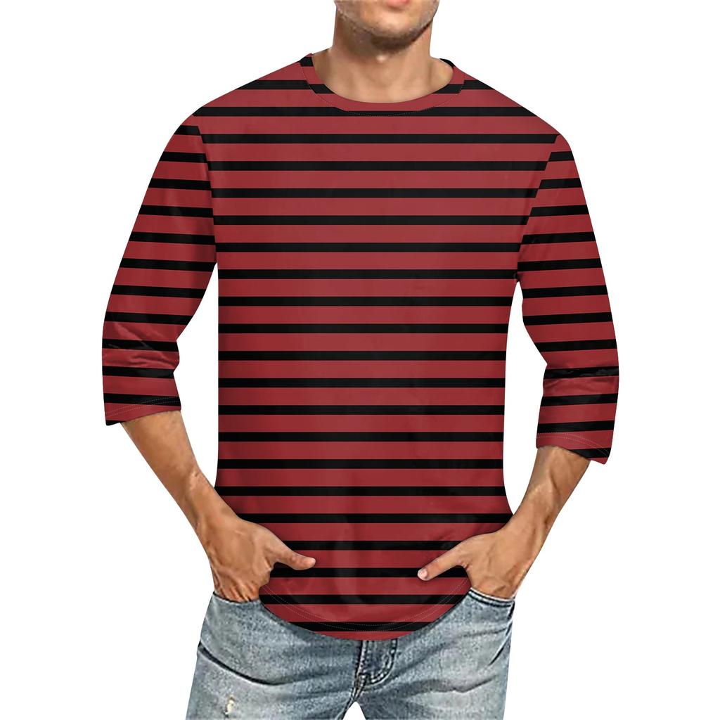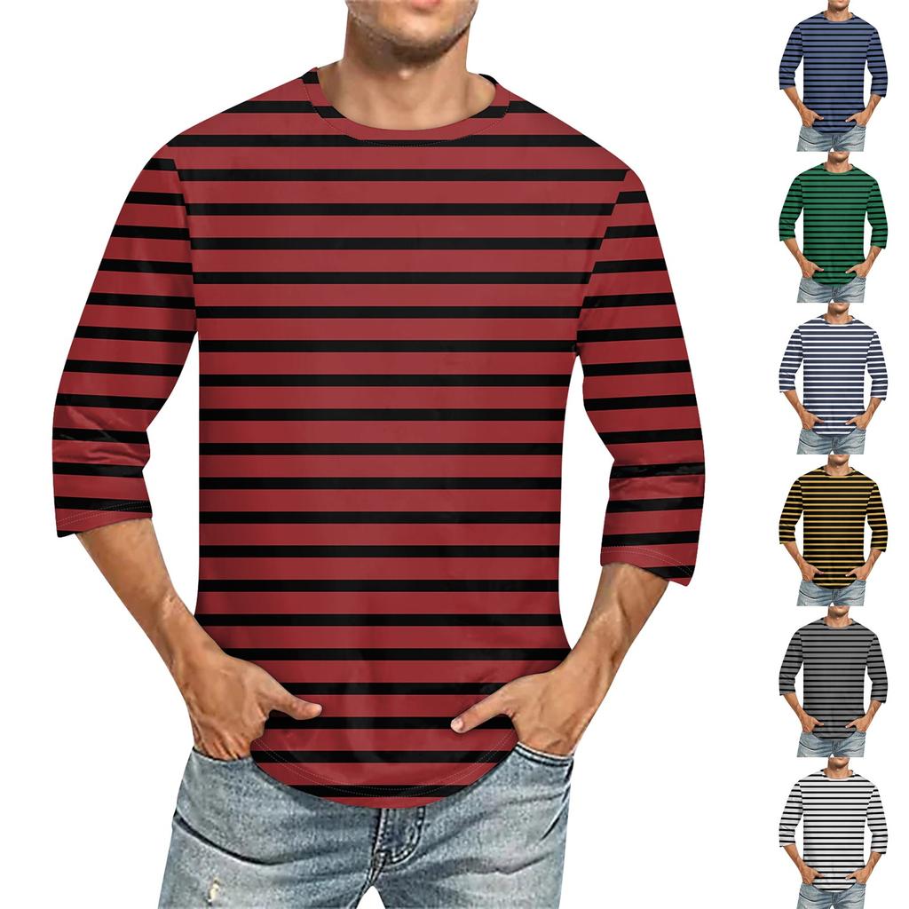 Мужская однотонная футболка с круглым вырезом и рукавами три четверти