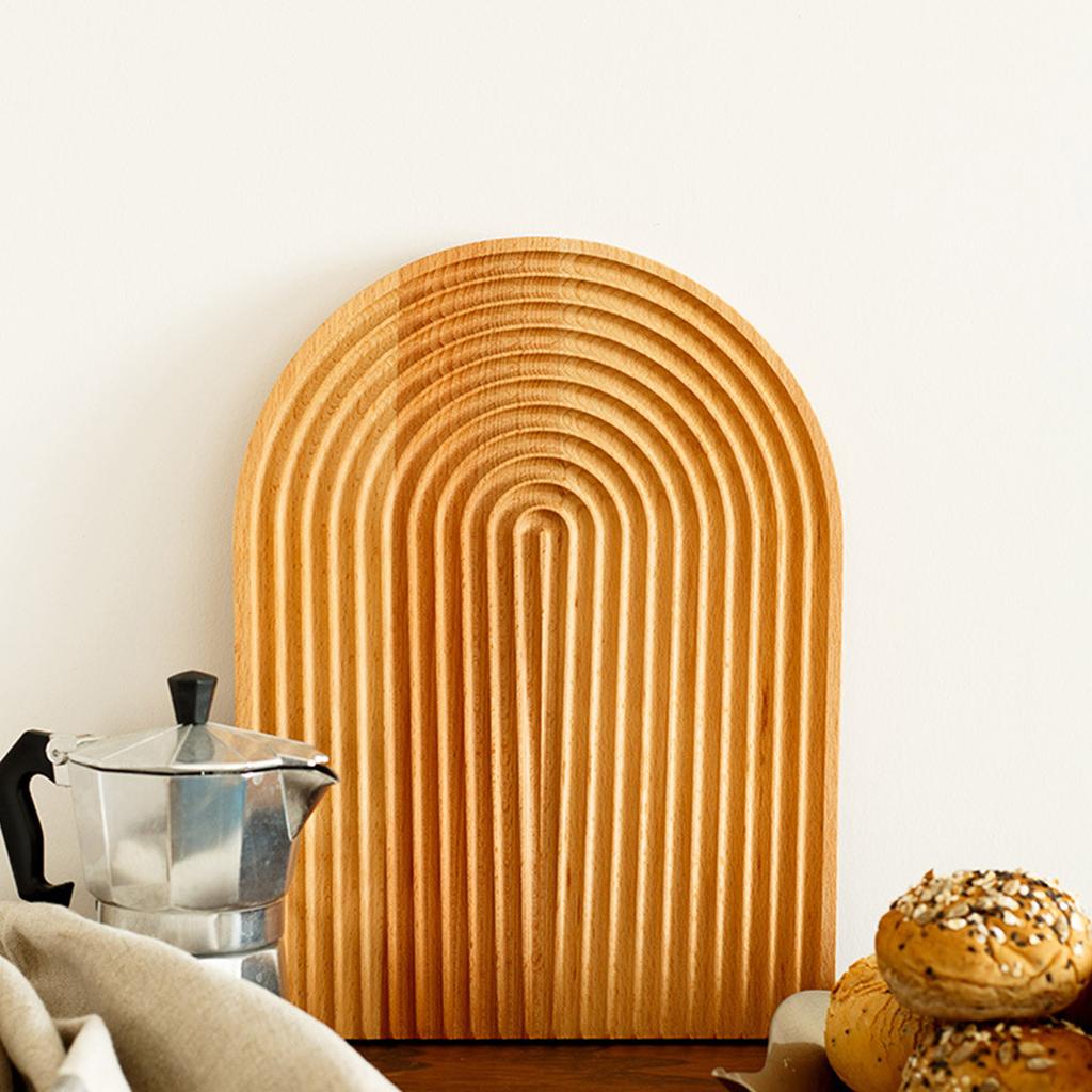 Декоративная деревянная сервировочная доска, пищевая разделочная доска из бука для закусок, деревянная сервировочная тарелка для кухонной стойки в ребристой радужной форме