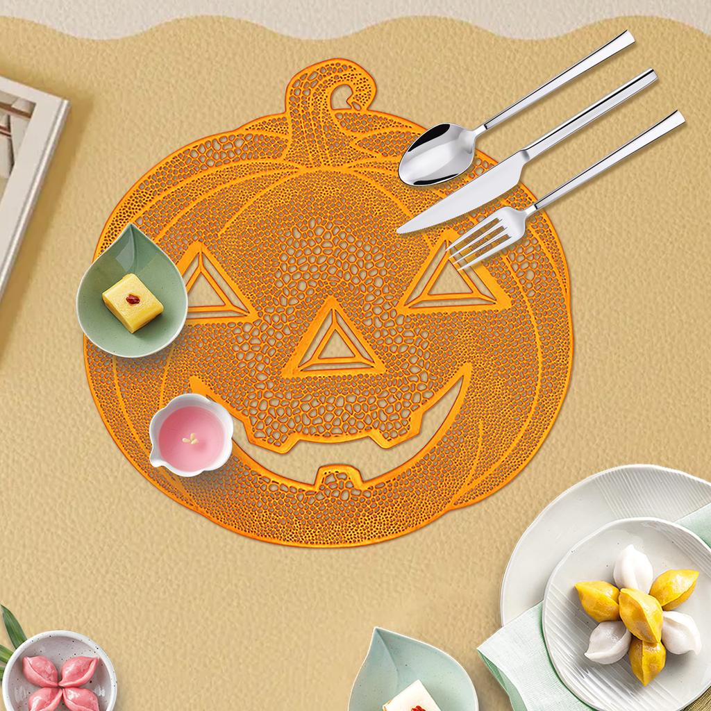 Эта уникальная салфетка, тщательно изготовленная из ПВХ-материала и сочетающая в себе три очаровательных цвета: оранжевый и золотой, несомненно, станет идеальным выбором для украшения на Хэллоуин.. На вечеринках в честь Хэллоуина, когда его кладут на обеденный стол, он сразу же становится центром внимания.. Изысканная посуда и соблазнительные блюда, выставленные на ее фоне, кажутся наделенными таинственным. Независимо от того, демонстрируете ли вы уникально оформленные десерты или роскошные блюда, его яркие цвета могут мгновенно улучшить атмосферу всего обеденного стола, погружая каждого гостя в радость и таинственность праздника.. Используйте его для пикников на открытом воздухе в честь Хэллоуина, его уникальные цвета создают интересный контраст с окружающим природным пейзажем на осенней траве.. Когда светит солнце, цвета на коврике для пикника становятся еще ярче, добавляя пикнику неповторимую радость и сюрприз.. Его преимущества очень. Во-первых, материал ПВХ обладает прекрасными водонепроницаемыми и маслостойкими свойствами.. Даже если случайно прольется суп или напиток, его можно легко протереть, эффективно защищая рабочий стол от пятен.. Во-вторых, умелое сочетание трех ярких и праздничных цветов не только не раскрывает в полной мере таинственные особенности Хэллоуина, но и создает уникальный и красивый декор для вашего обеденного стола.. Кроме того, его текстура мягкая, но прочная, ее нелегко повредить, и она выдерживает многократное использование.. Например, когда веселая вечеринка заканчивается и салфетки покрываются пятнами, простое протирание может быстро восстановить чистоту и порядок, подготовив их к следующему яркому появлению.