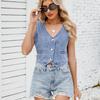 Женский однотонный джинсовый жилет с V-образным вырезом на пуговицах