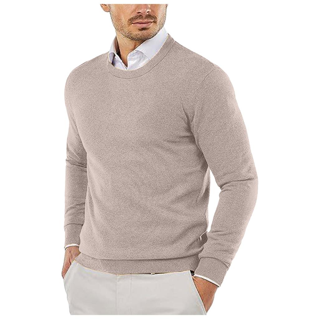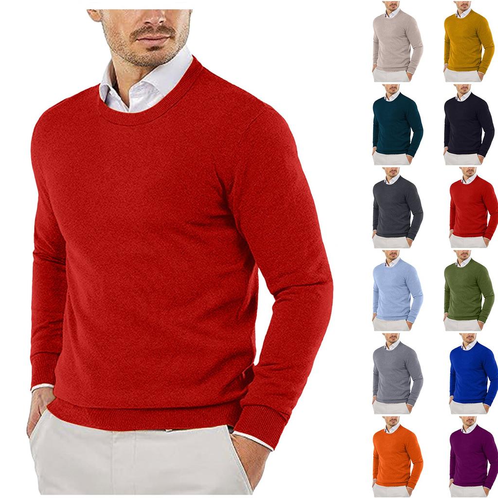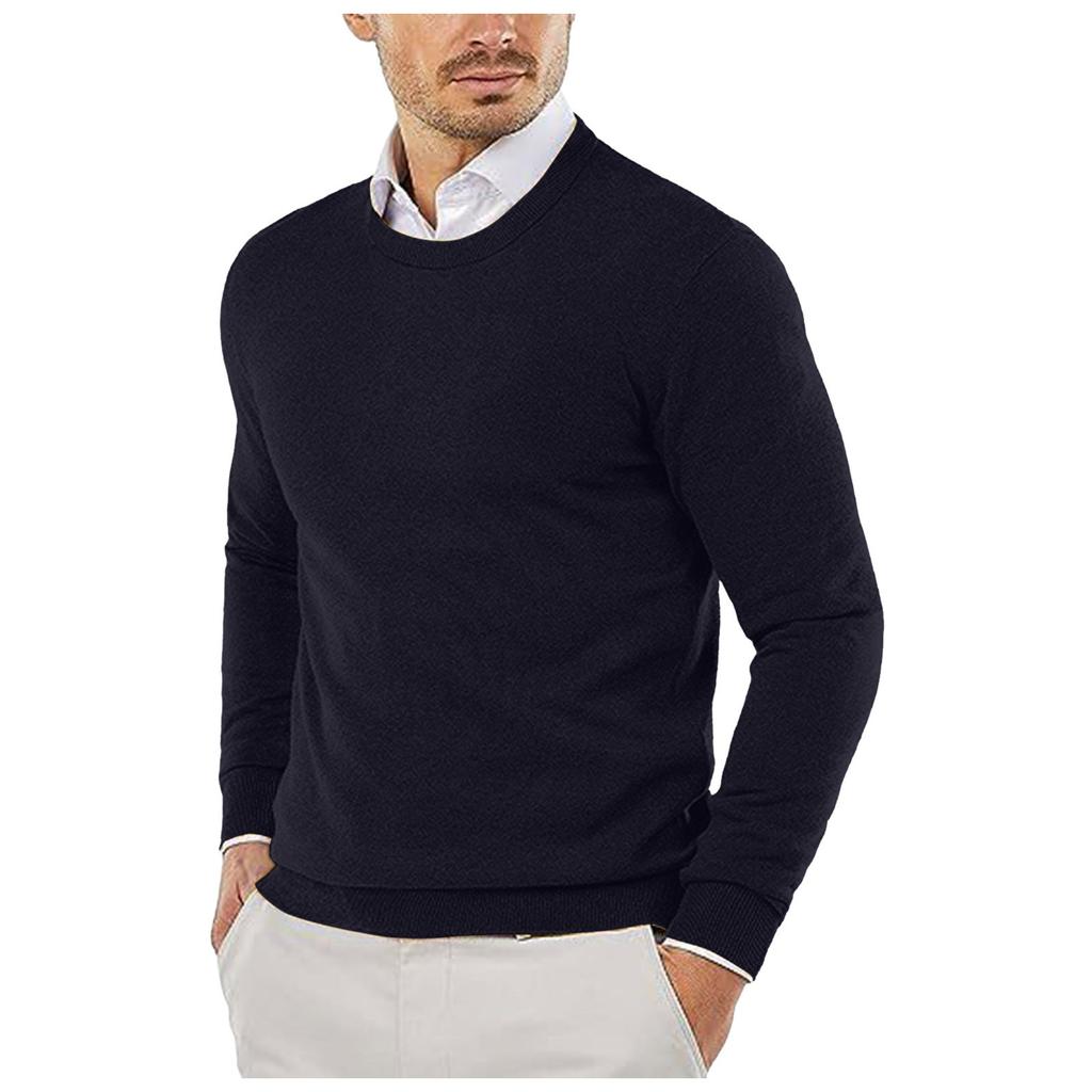Круглый ворот свитера вязаный свитер однотонный повседневный свитер с длинным рукавом пуловер шерстяной свитер мужской