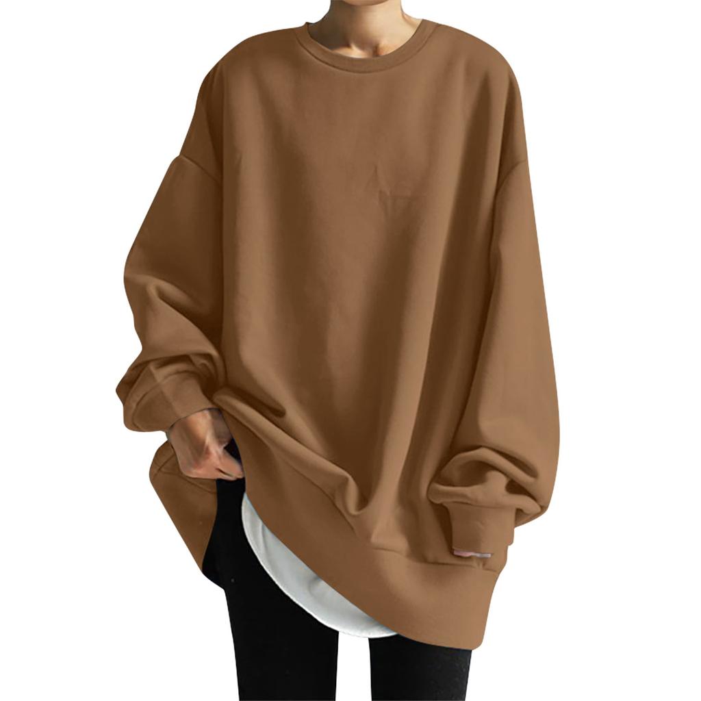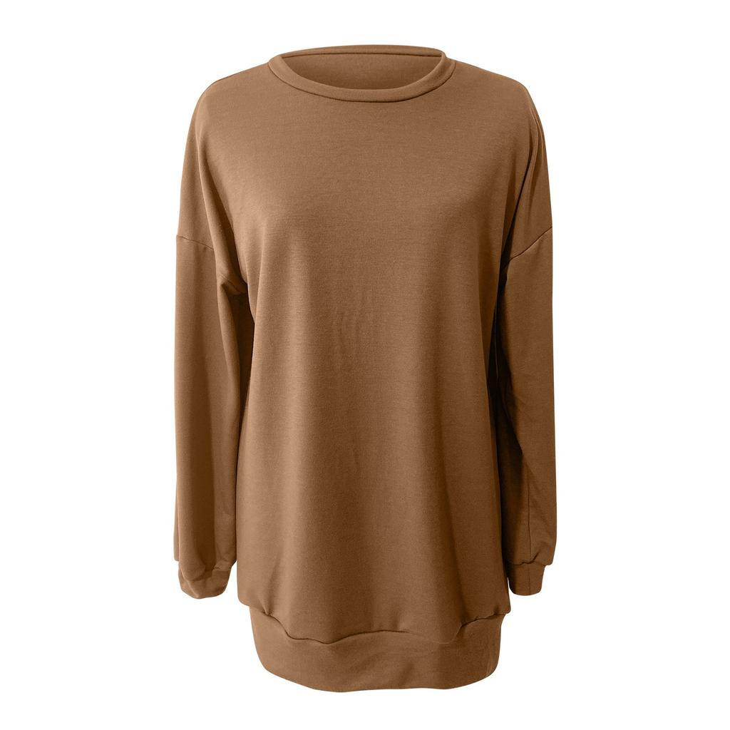 Женская мода повседневная свободная толстовка с круглым вырезом и длинным рукавом, однотонная длинная толстовка
