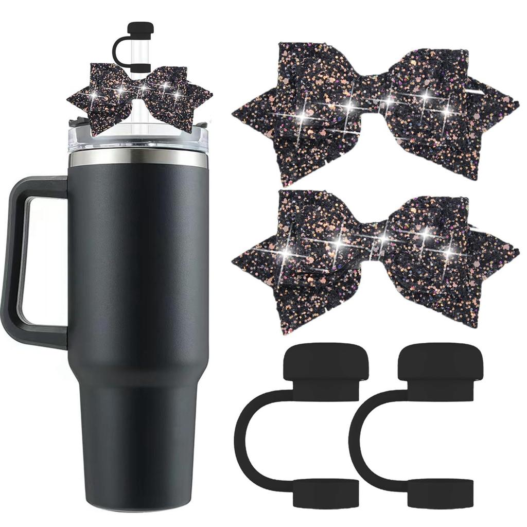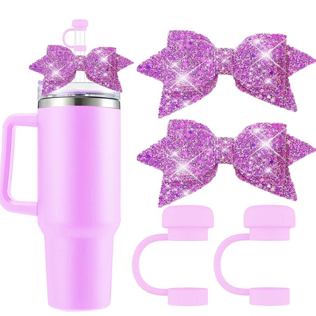 2 шт. силиконовый чехол для стакана с 2 шт. симпатичные блестящие бантики для стакана чехол для стакана 30 и 40 унций