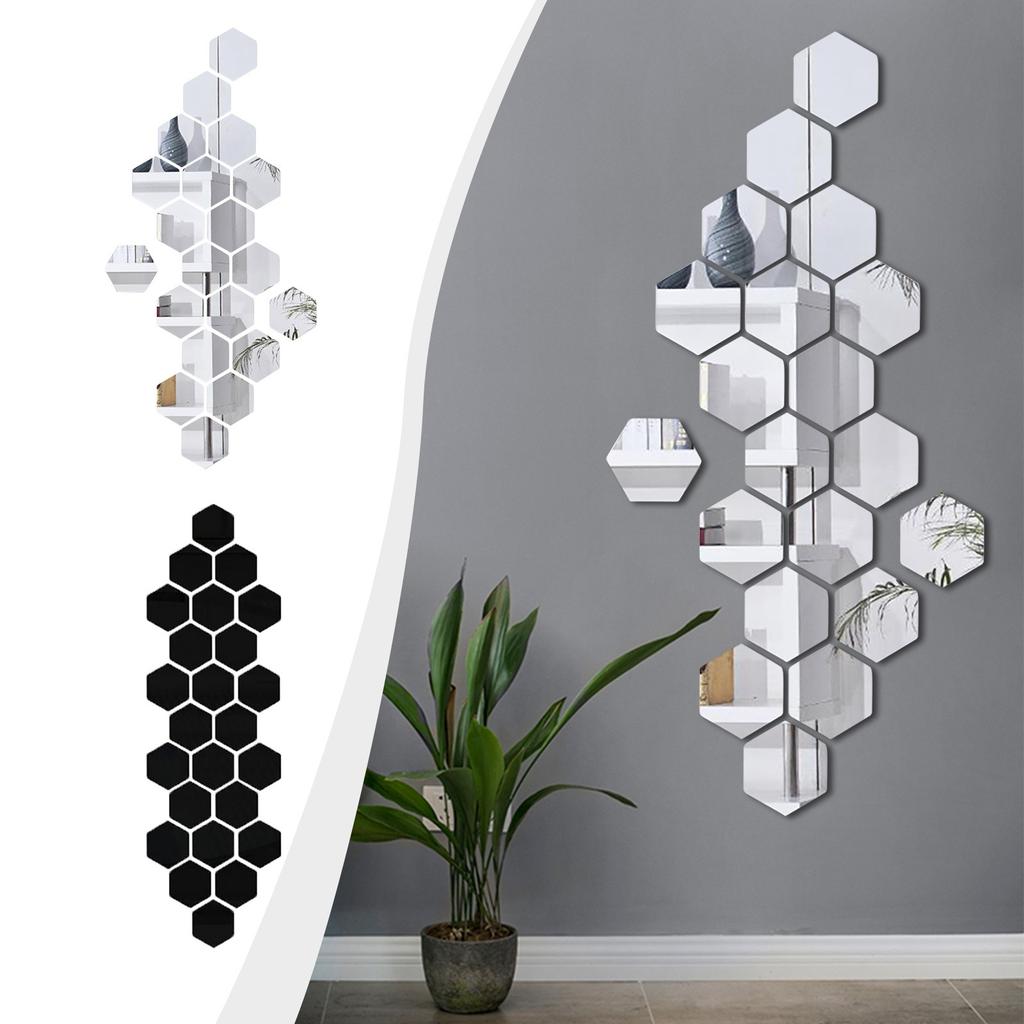 Зеркальные настенные наклейки, шестиугольное зеркало, декоративное настенное панно своими руками для дома, акриловые самоклеящиеся настенные плитки для гостиной, спальни
