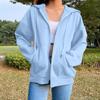 Женская мода, повседневная однотонная толстовка, осень/зима, кардиган с длинными рукавами и карманами, куртка на молнии, пальто с капюшоном