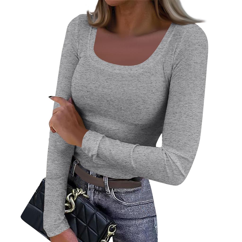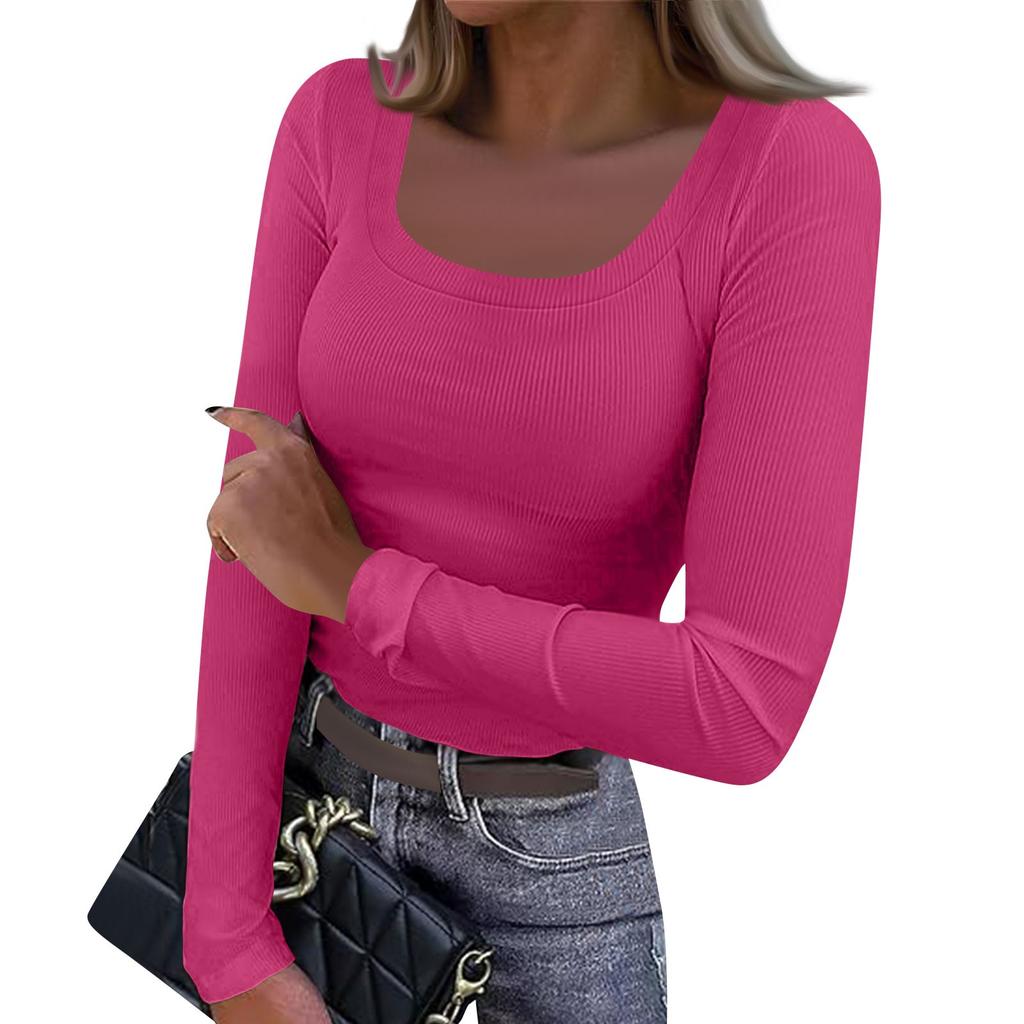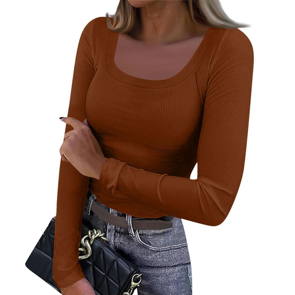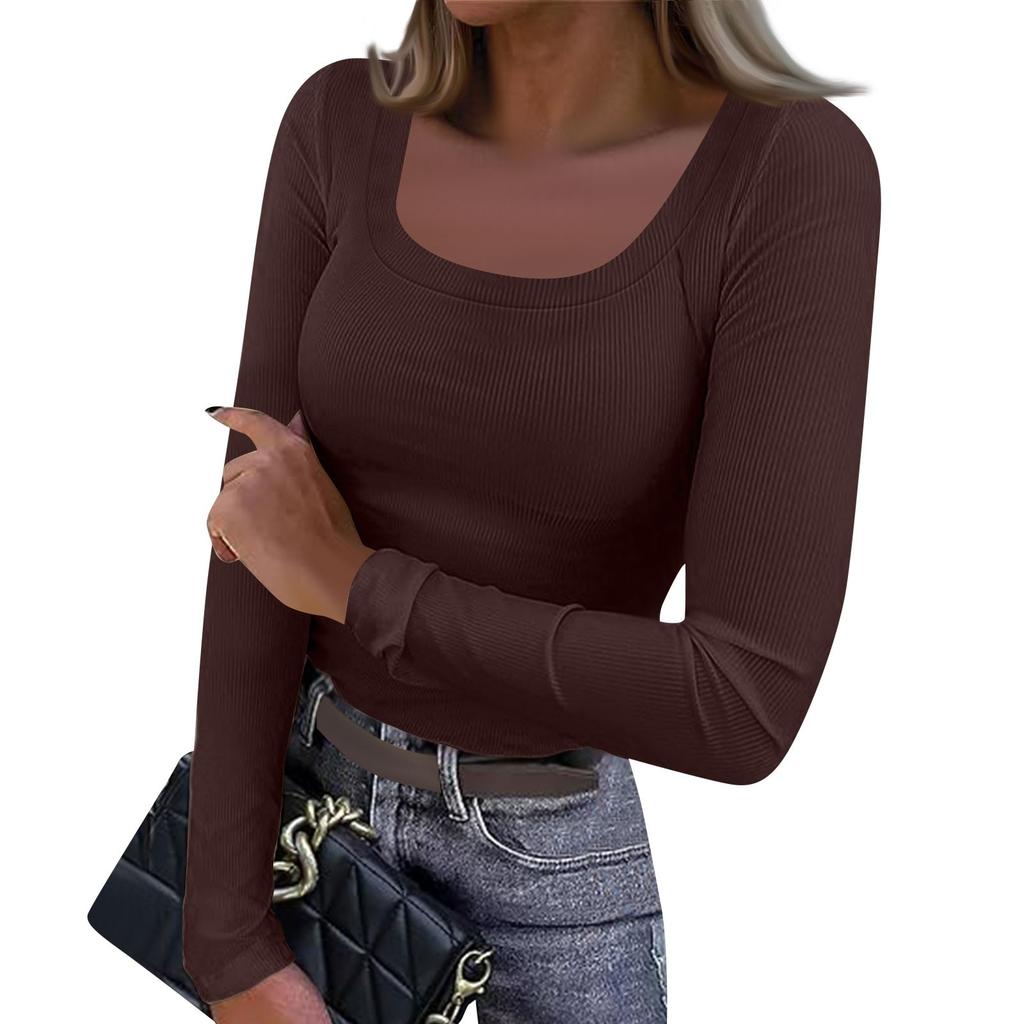 Женская и зимняя футболка с тонким низом, модная повседневная однотонная футболка с квадратным вырезом, длинный рукав