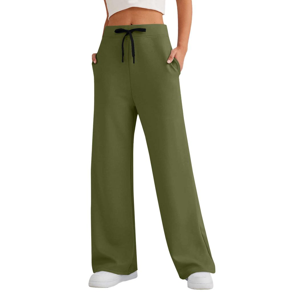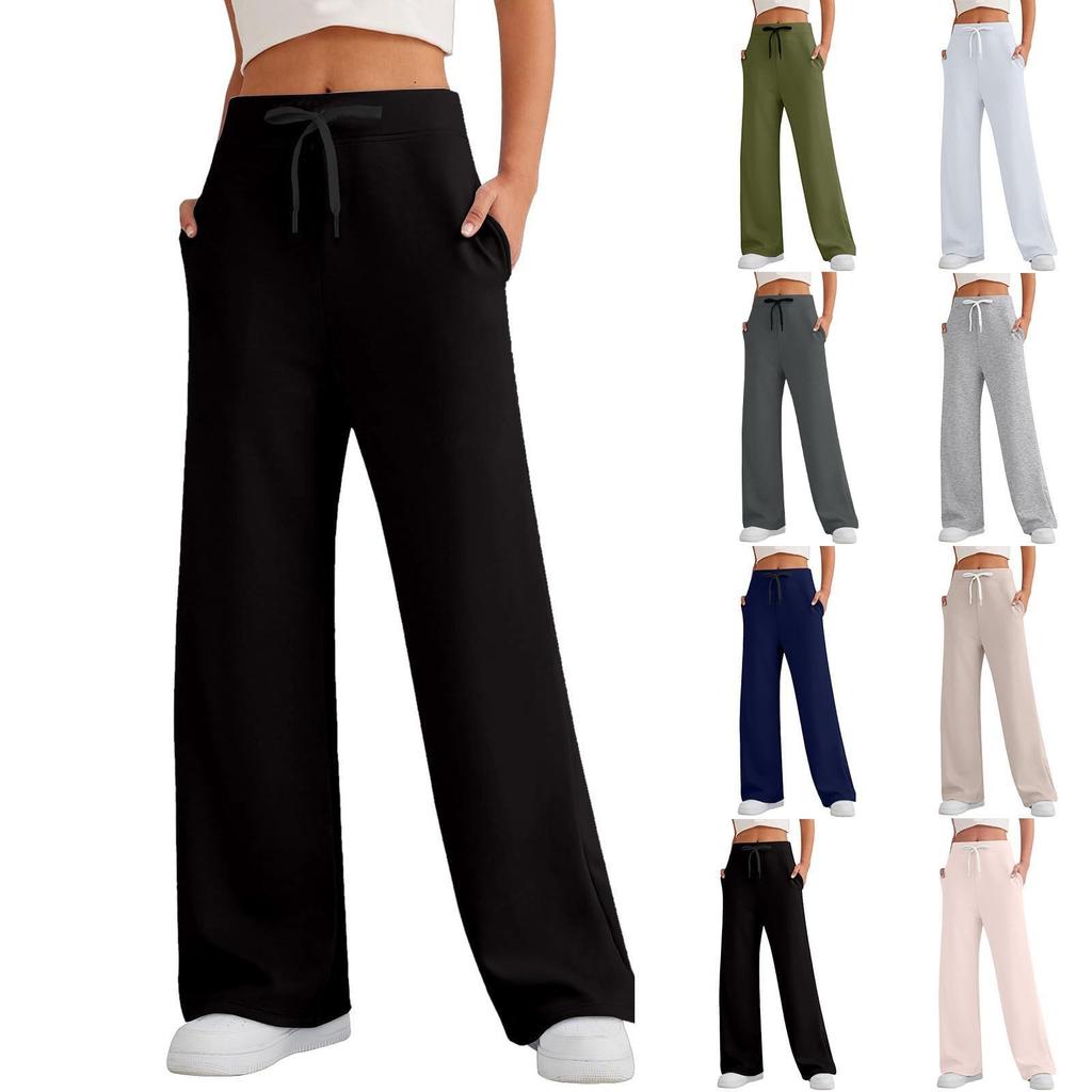 Женские спортивные брюки для фитнеса, повседневные свободные брюки с высокой талией, спортивные брюки на шнурке, женские прямые брюки с широкими штанинами, повседневные брюки, брюки для йоги
