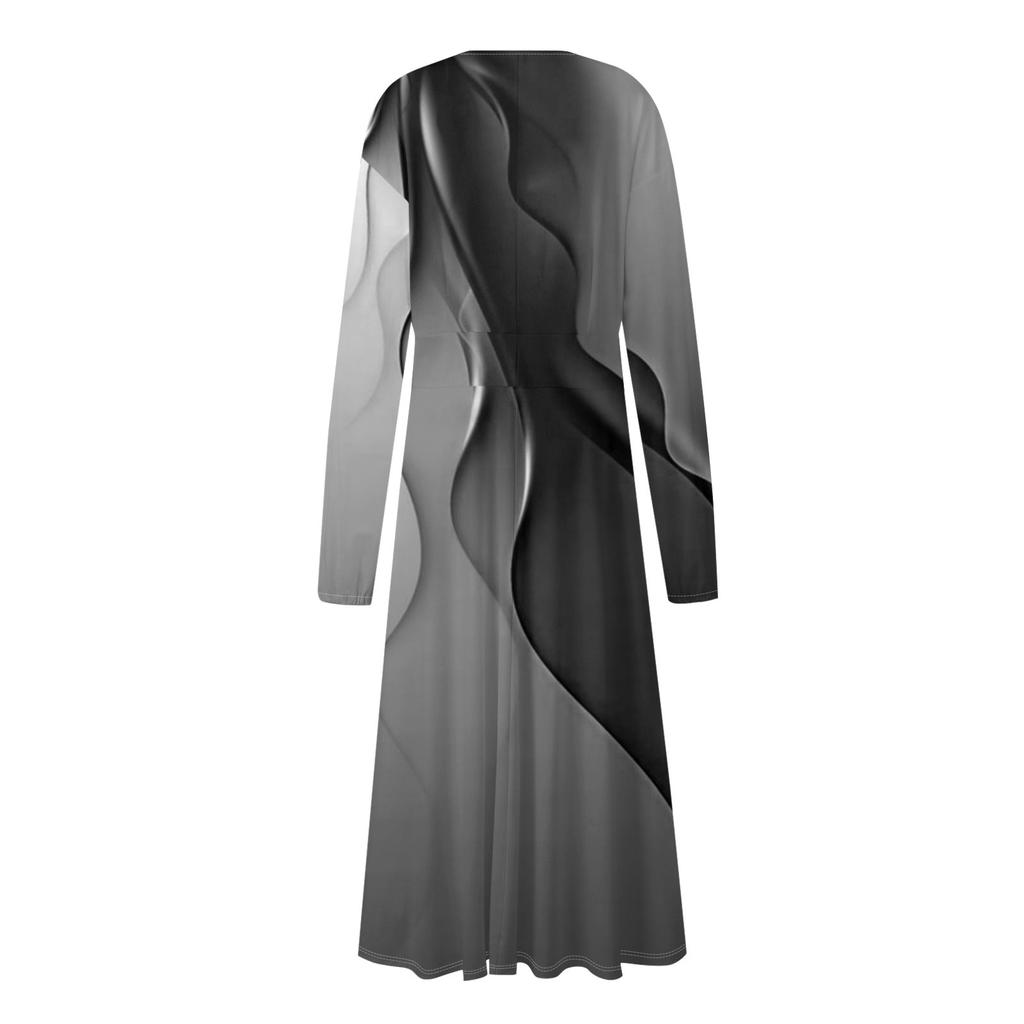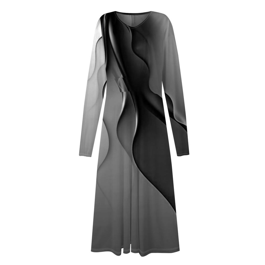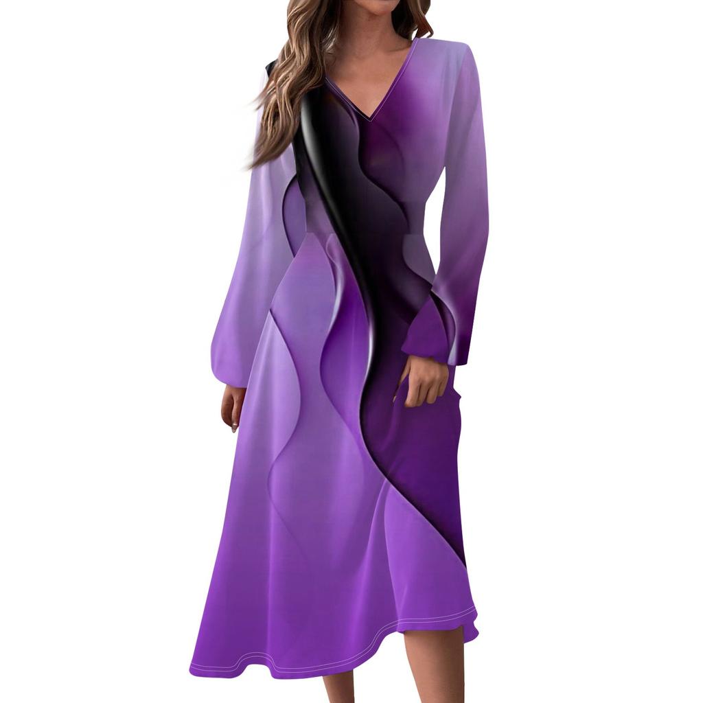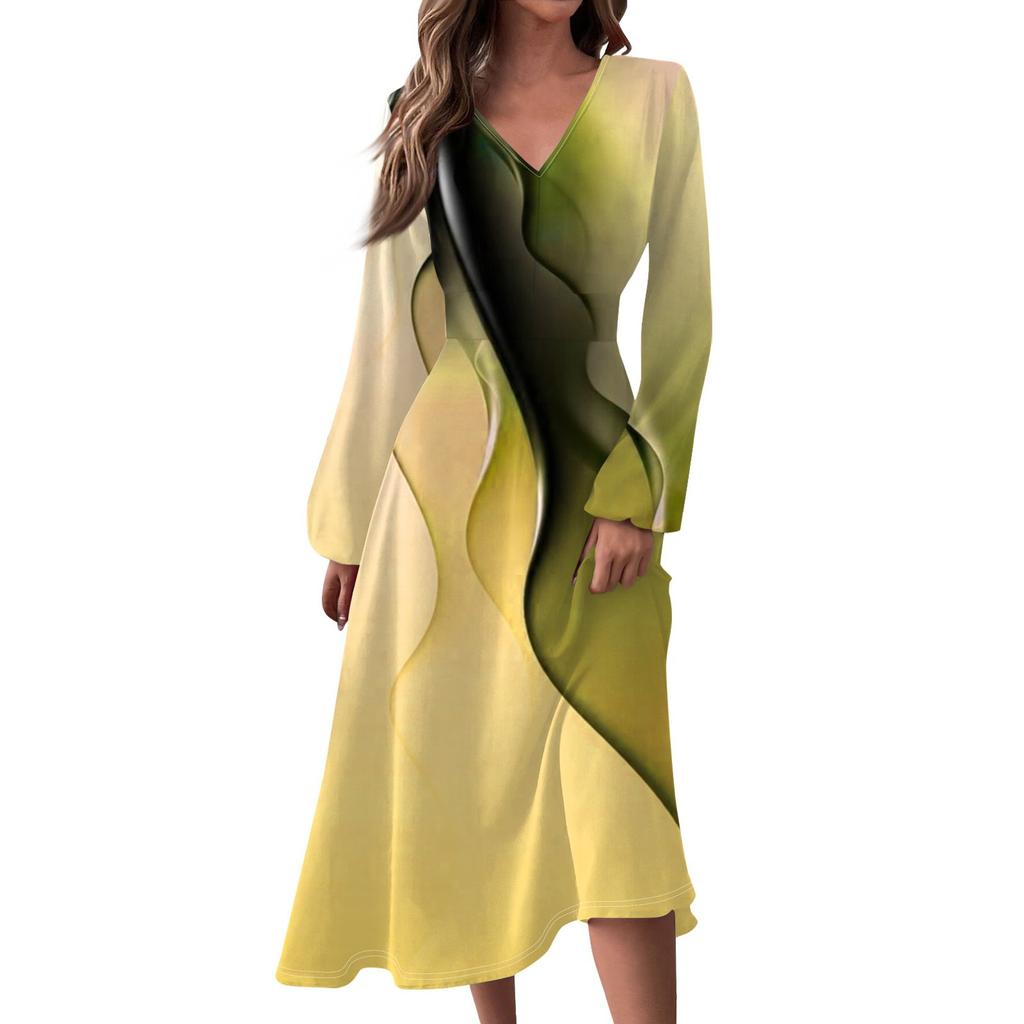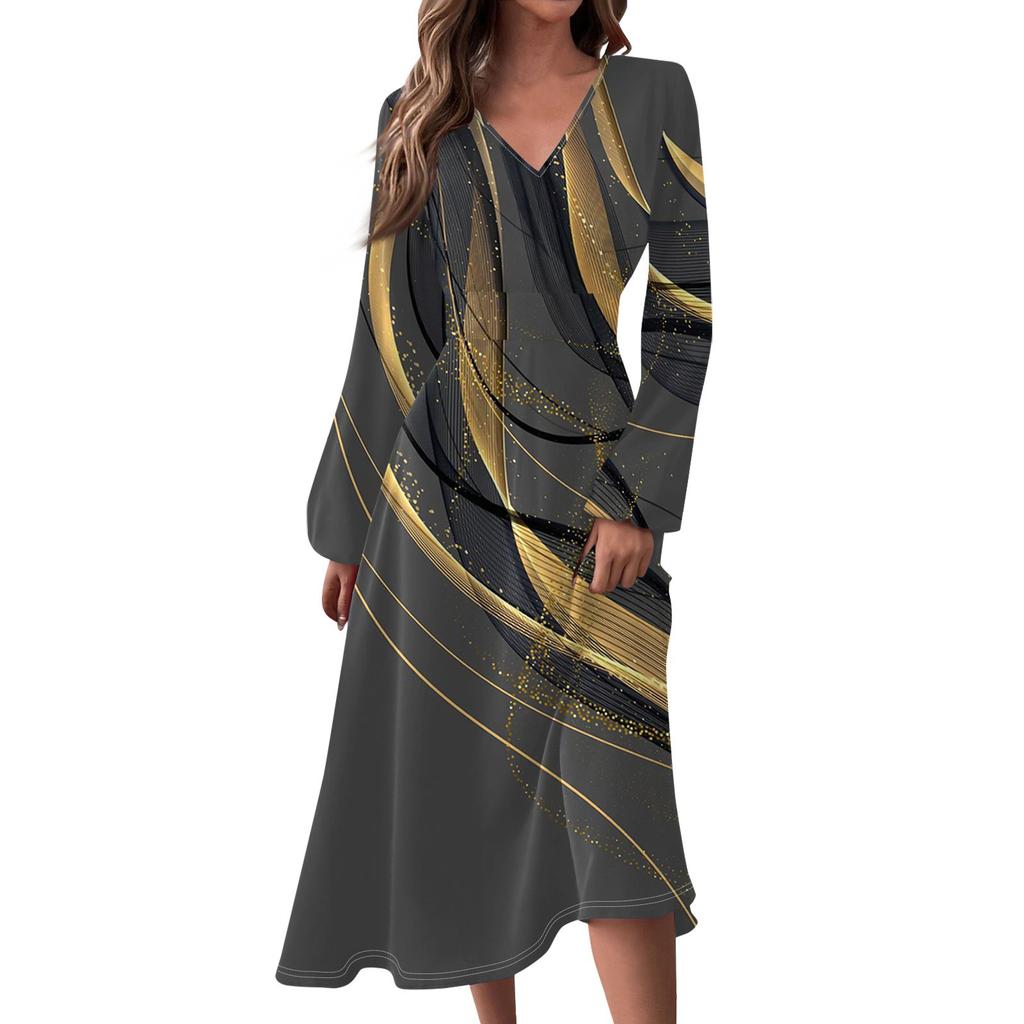 Женское осеннее и зимнее повседневное модное длинное платье с v-образным вырезом и длинными рукавами и принтом