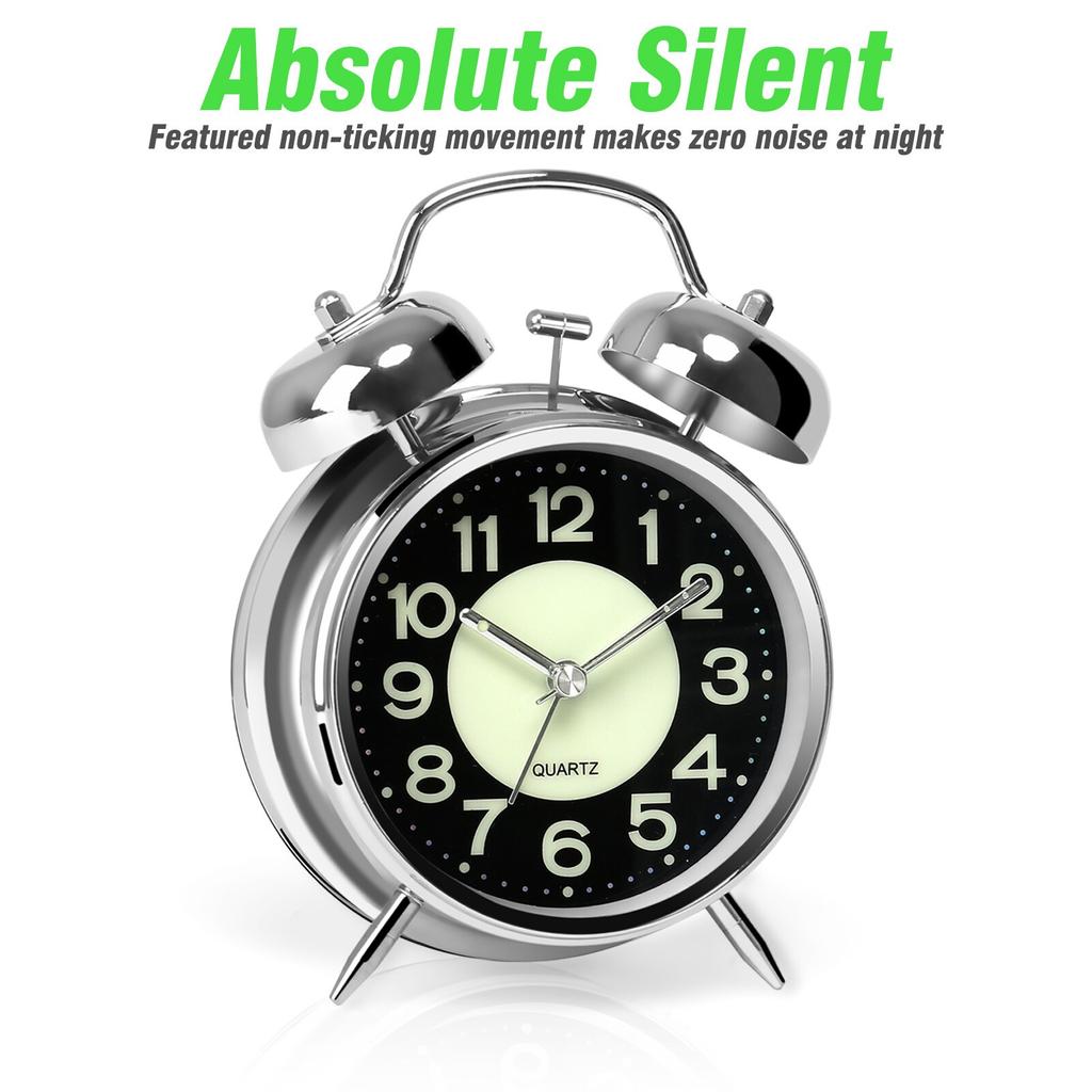 4-дюймовый двойной колокольчик супер громкий будильник с ночником для тяжелых шпал
