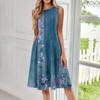 Женское модное повседневное платье-пуловер с круглым вырезом без рукавов и принтом средней длины