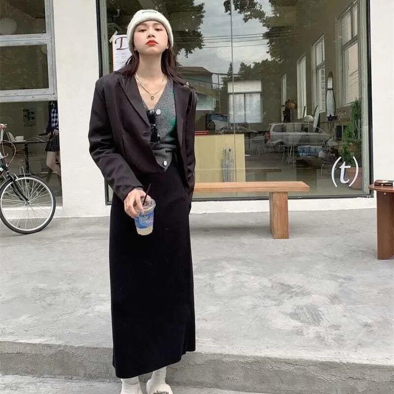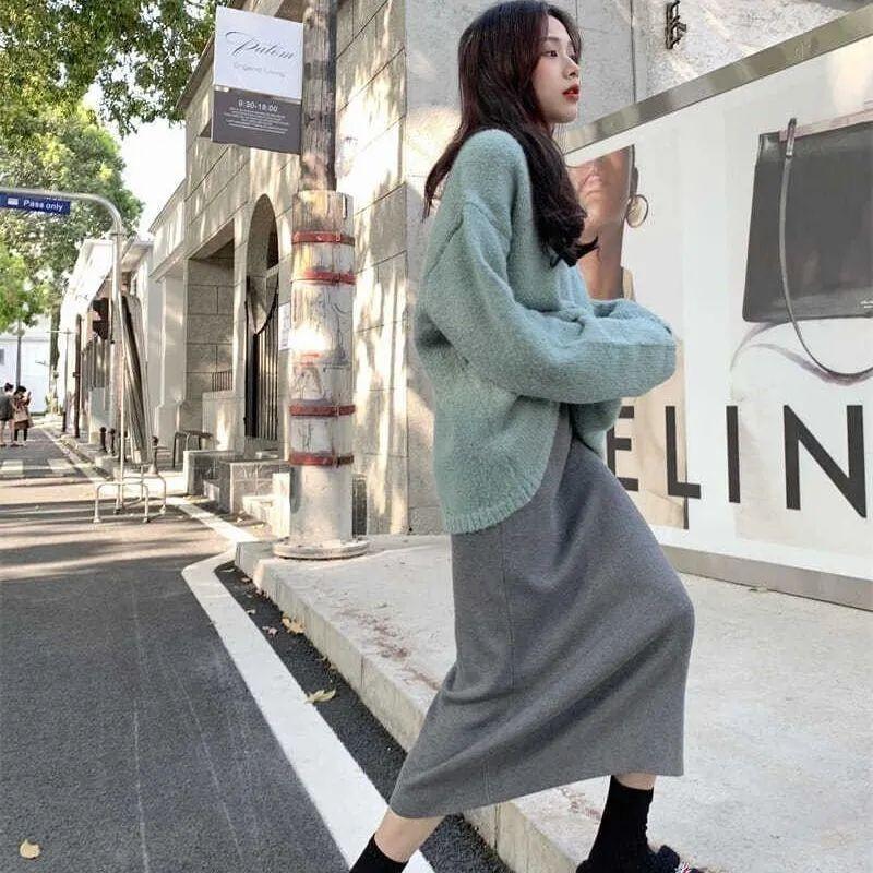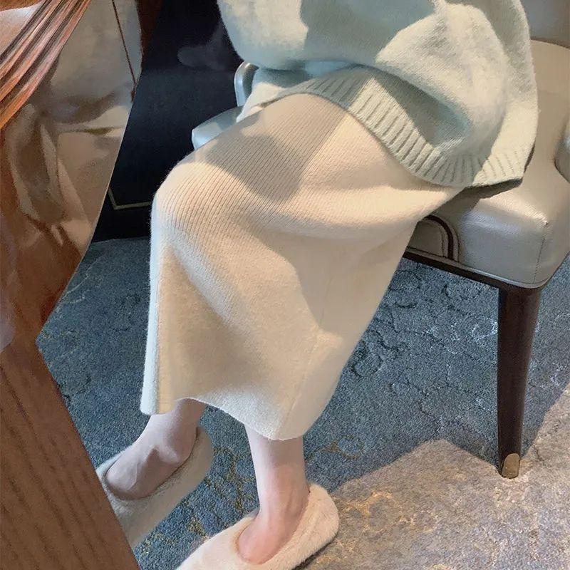 Женская вязаная миди-юбка длиной 80 см в корейском стиле, осенне-зимняя, с высокой посадкой, облегающая, стильная юбка-бодикон без разреза