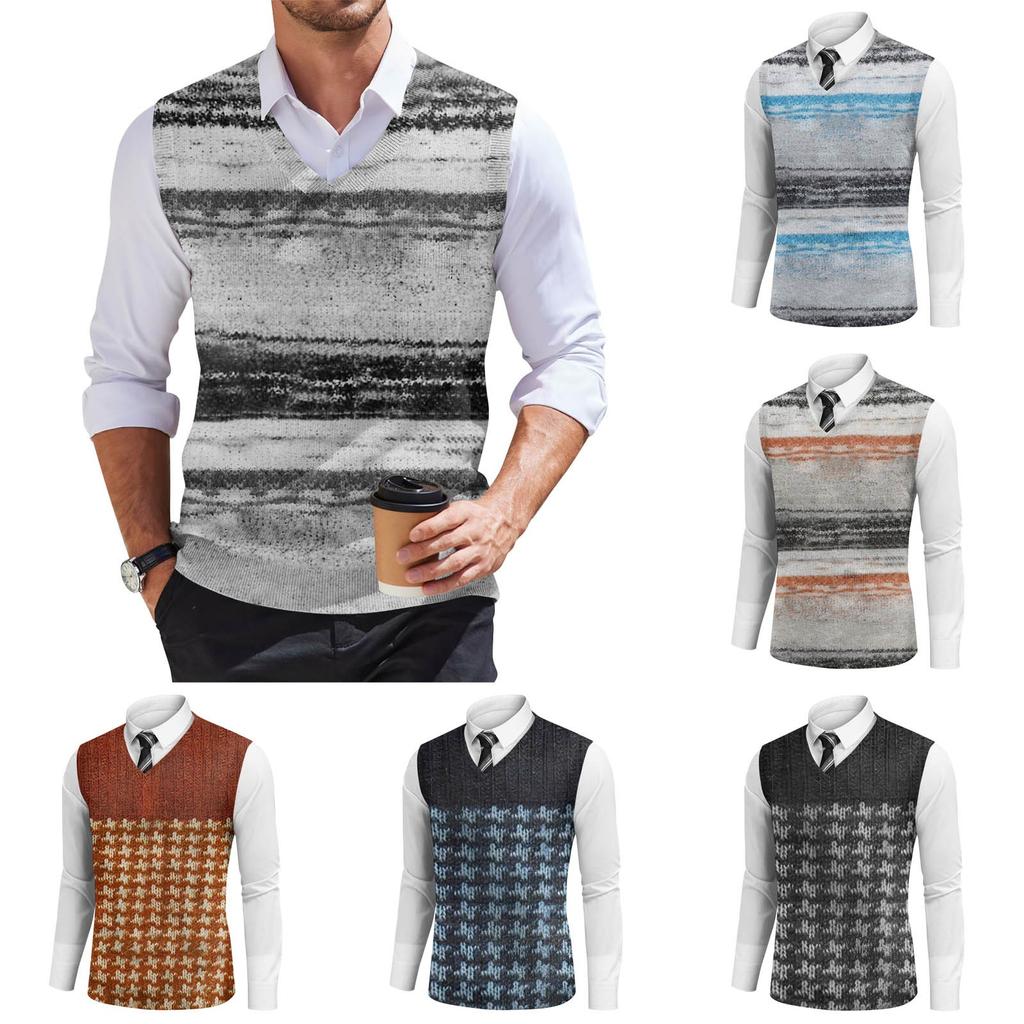 Мужская мода принтованный жилет с V-образным вырезом без рукавов трикотажный пуловер