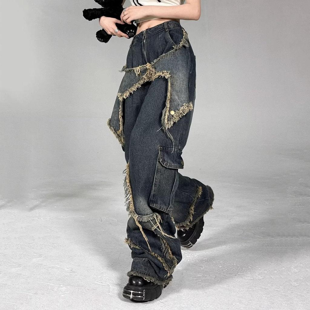 Американские ретро-джинсы с широкими штанинами для женщин, осень и зима, прямые, свободные, облегающие повседневные брюки высокого класса