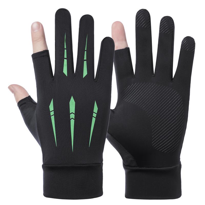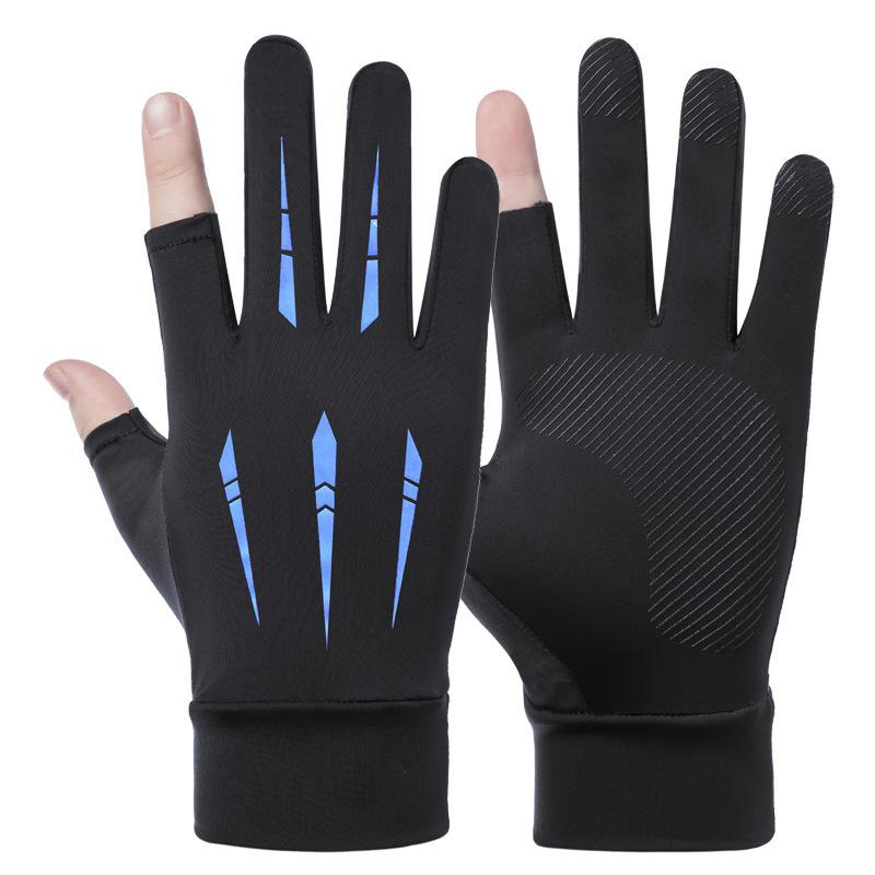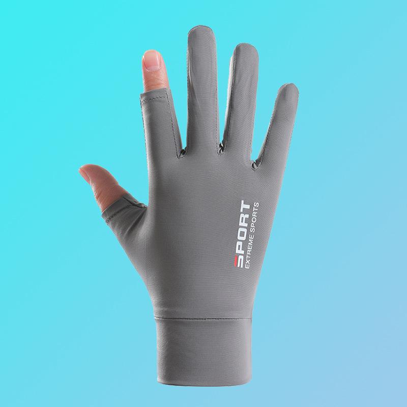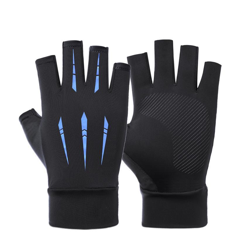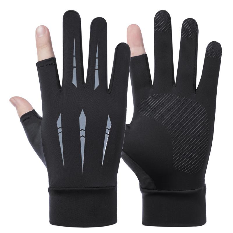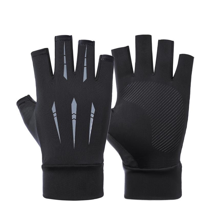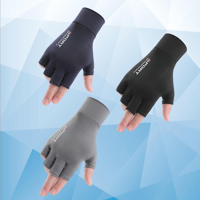 Солнцезащитные перчатки для вождения, рыбалки, с двумя открытыми пальцами, из ледяного шелка, противоскользящие, дышащие, для фитнеса, велоспорта, быстросохнущие