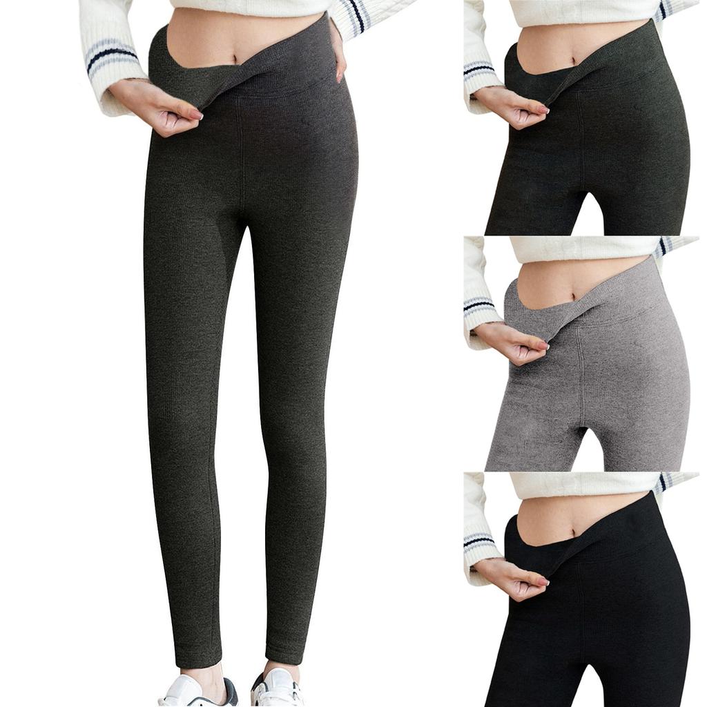 Женские повседневные брюки с высокой талией, однотонные флисовые термолеггинсы, зимние длинные флисовые брюки для бега из плюша