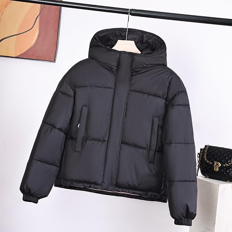 Женская куртка пуховик однотонная с капюшоном 2025 Новый год короткая холодостойкая куртка-хлеб студентка корейская стеганая куртка