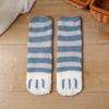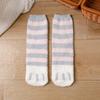Женские зимние новые утолщенные полосатые носки-трубы для сна с кошачьими лапками