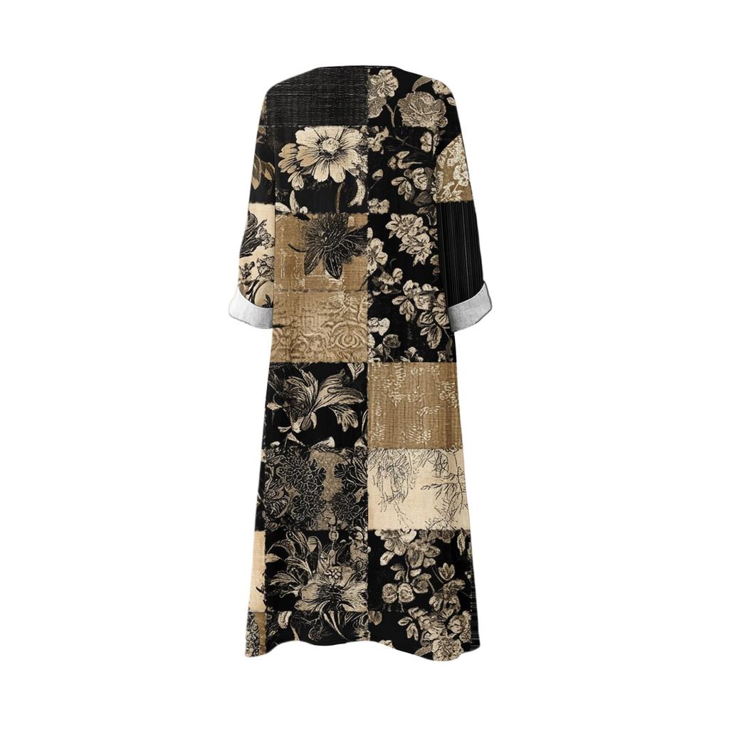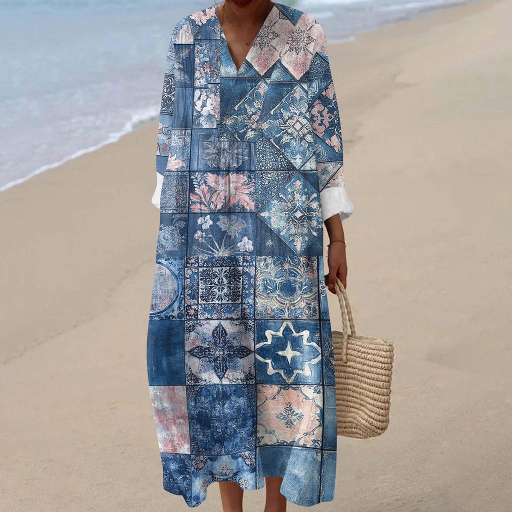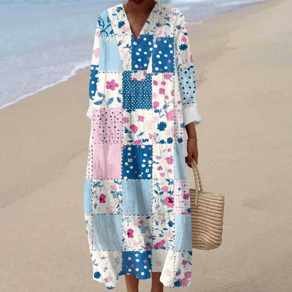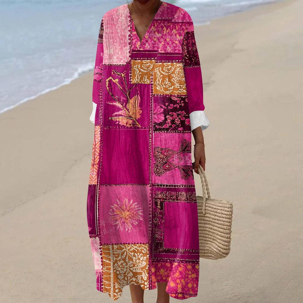 Женское повседневное модное платье макси с V-образным вырезом и длинными рукавами с цветочным принтом