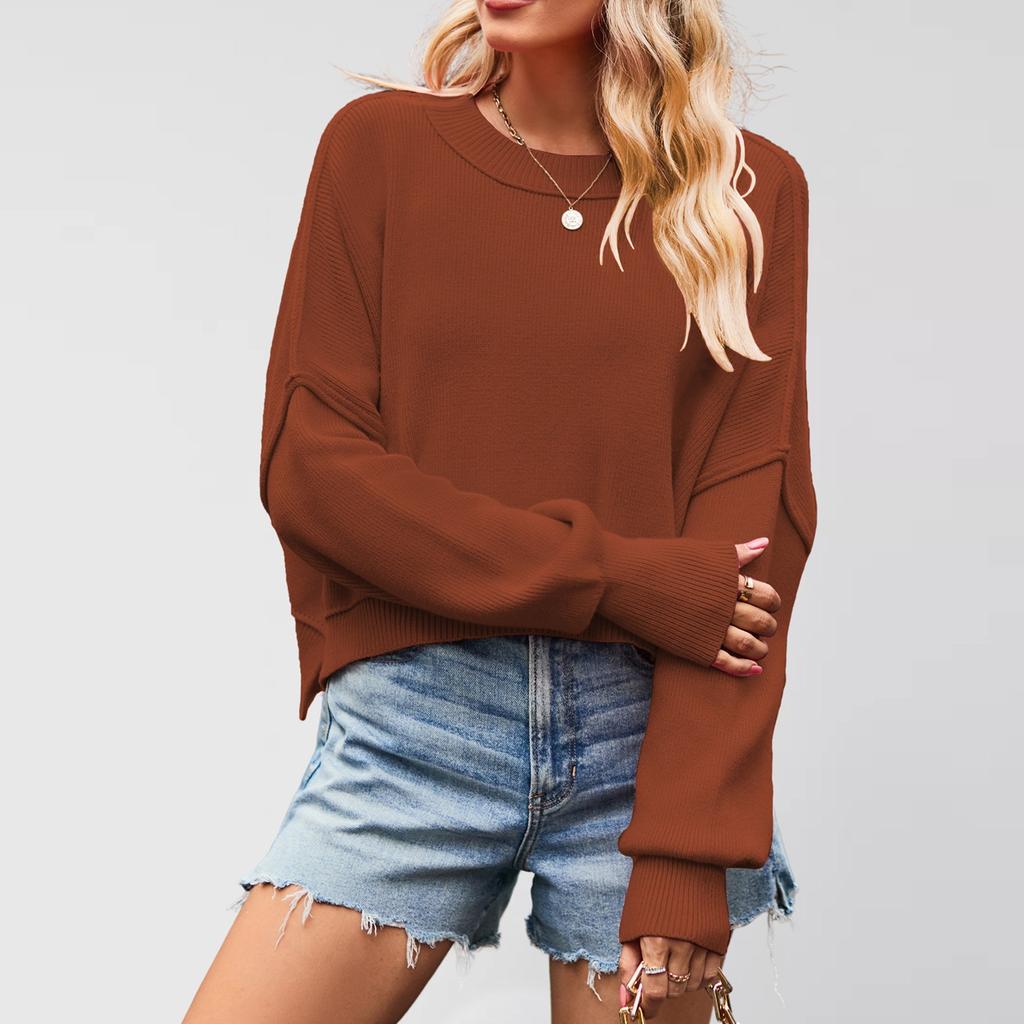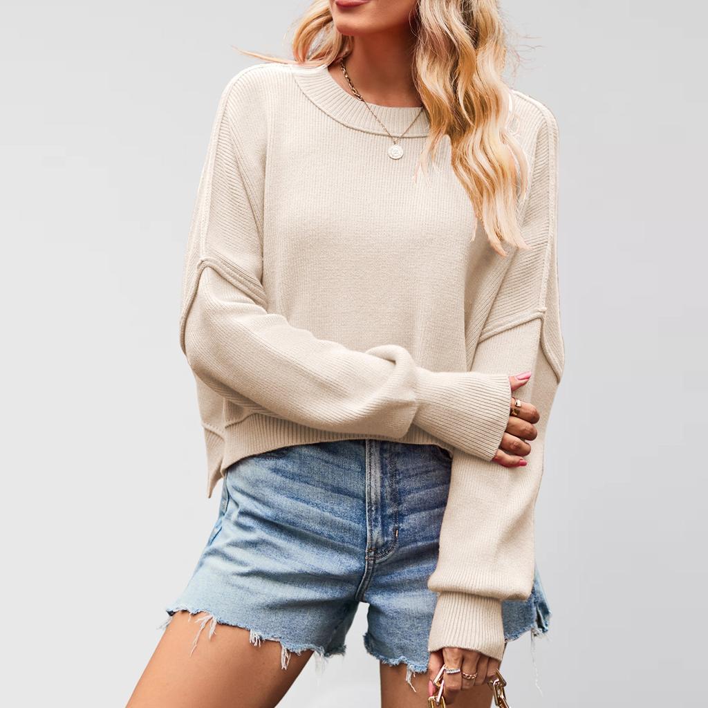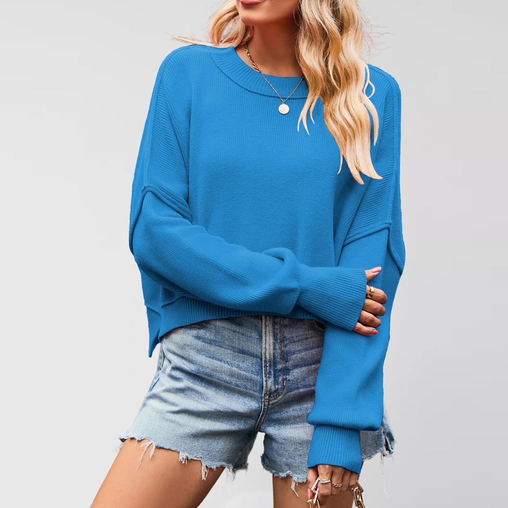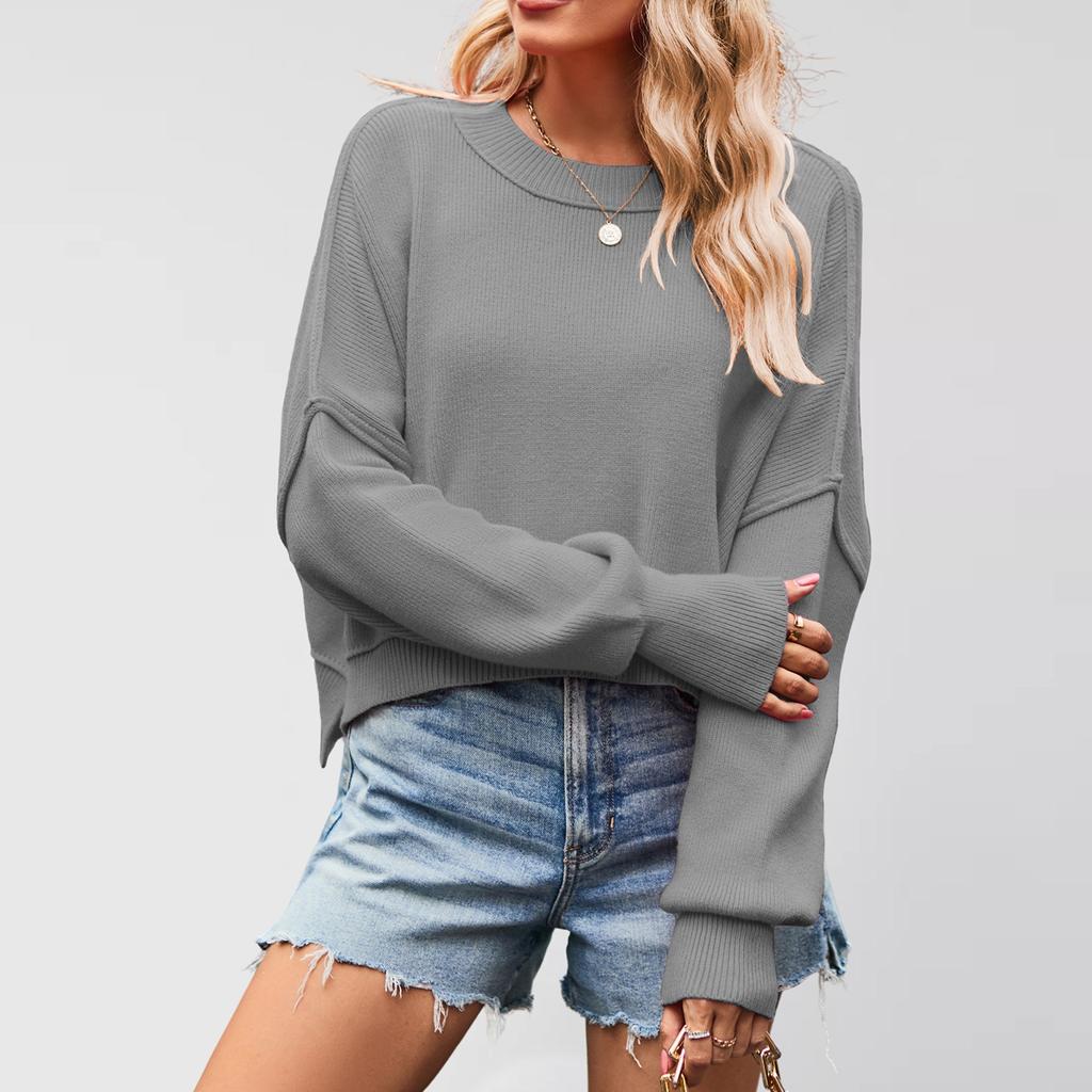 Женский однотонный полосатый модный трикотаж с круглым вырезом, свободный пуловер-свитер