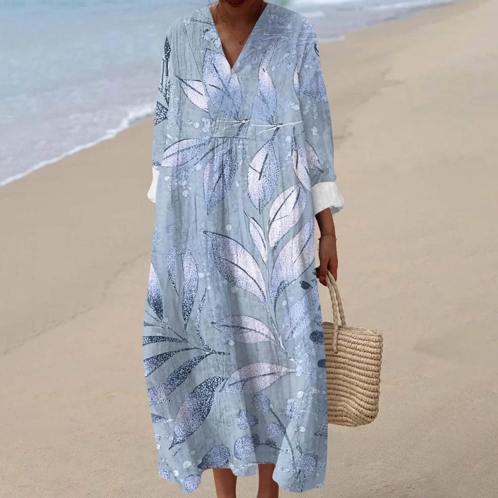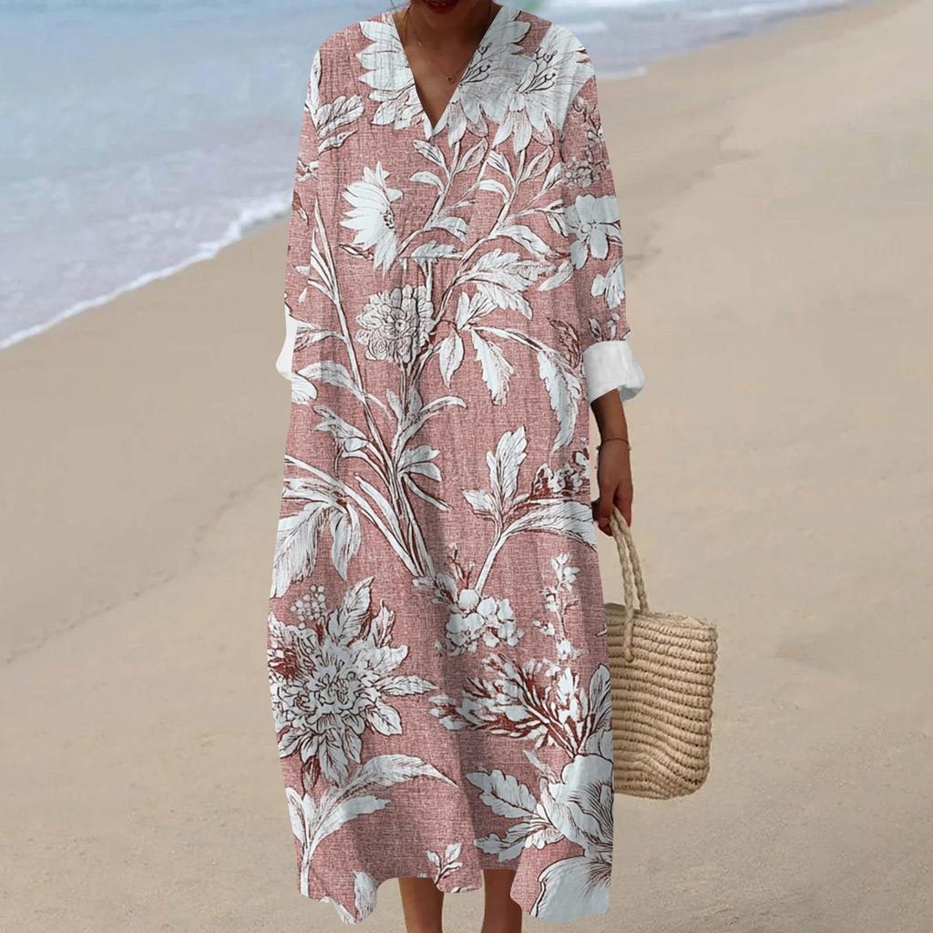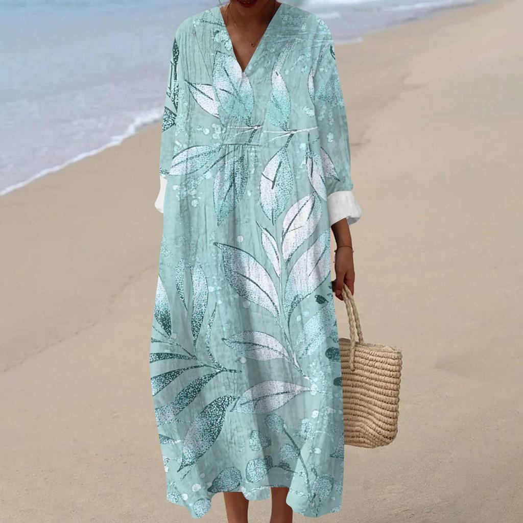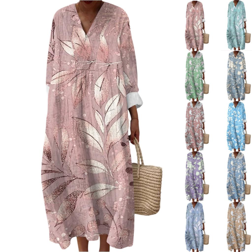 Женское повседневное модное платье макси с V-образным вырезом и длинными рукавами с цветочным принтом
