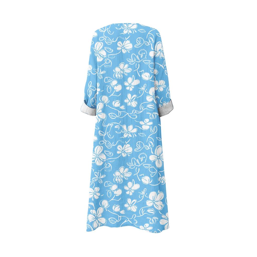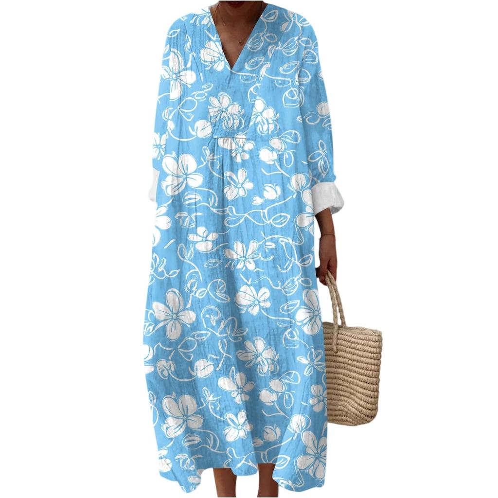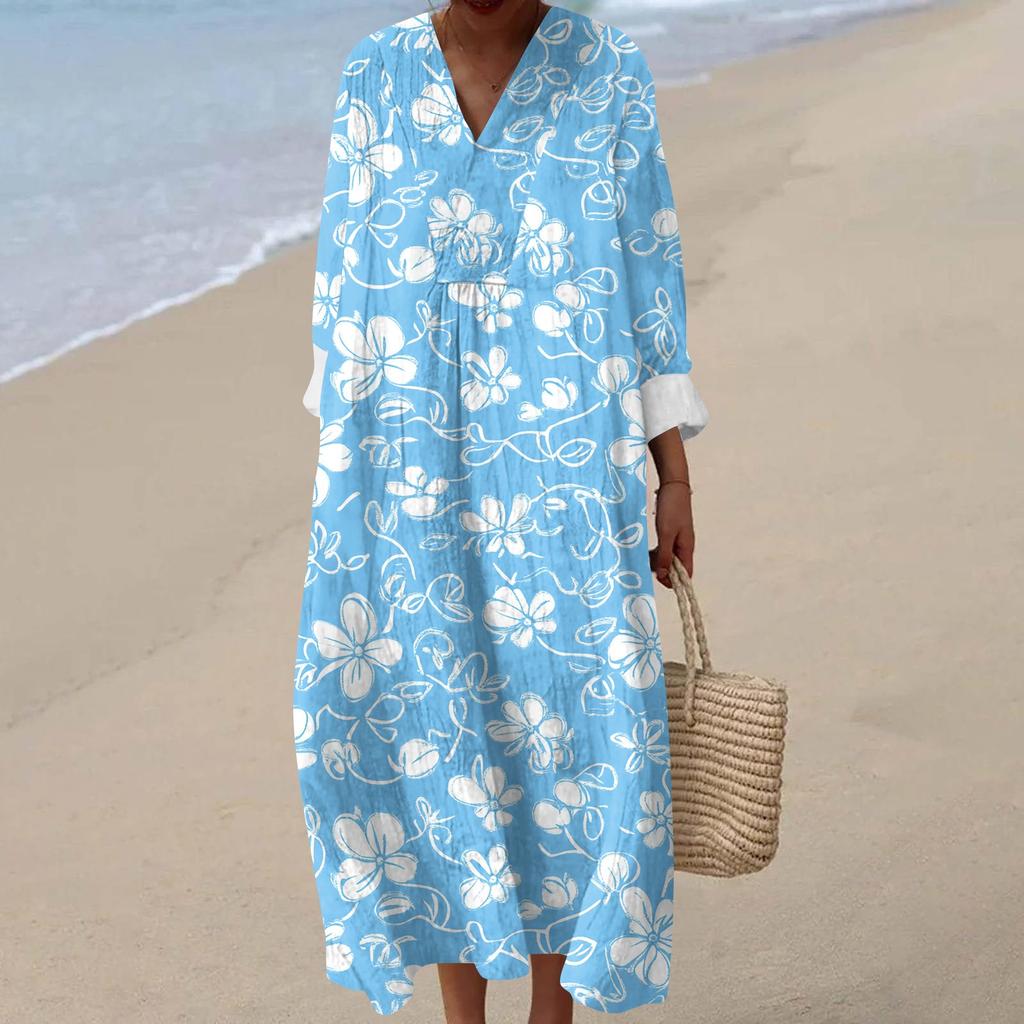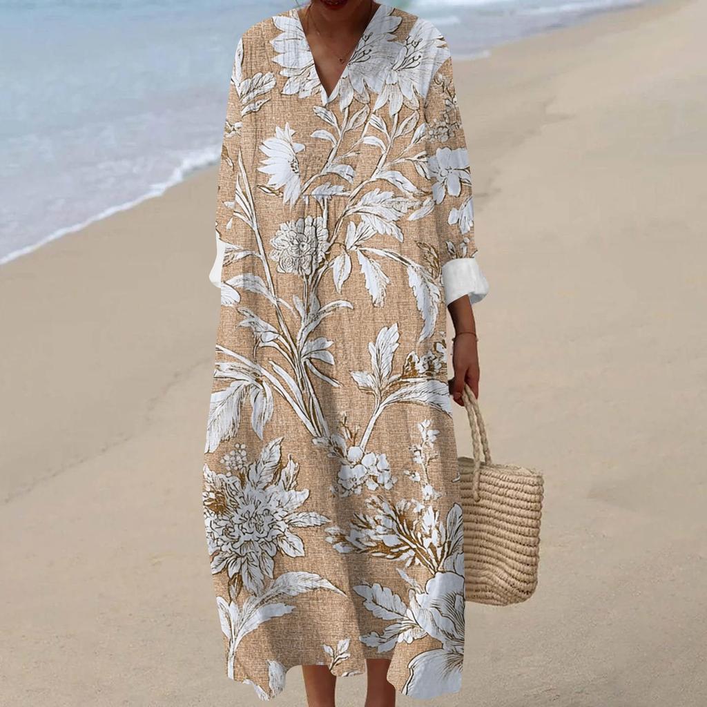 Женское повседневное модное платье макси с V-образным вырезом и длинными рукавами с цветочным принтом