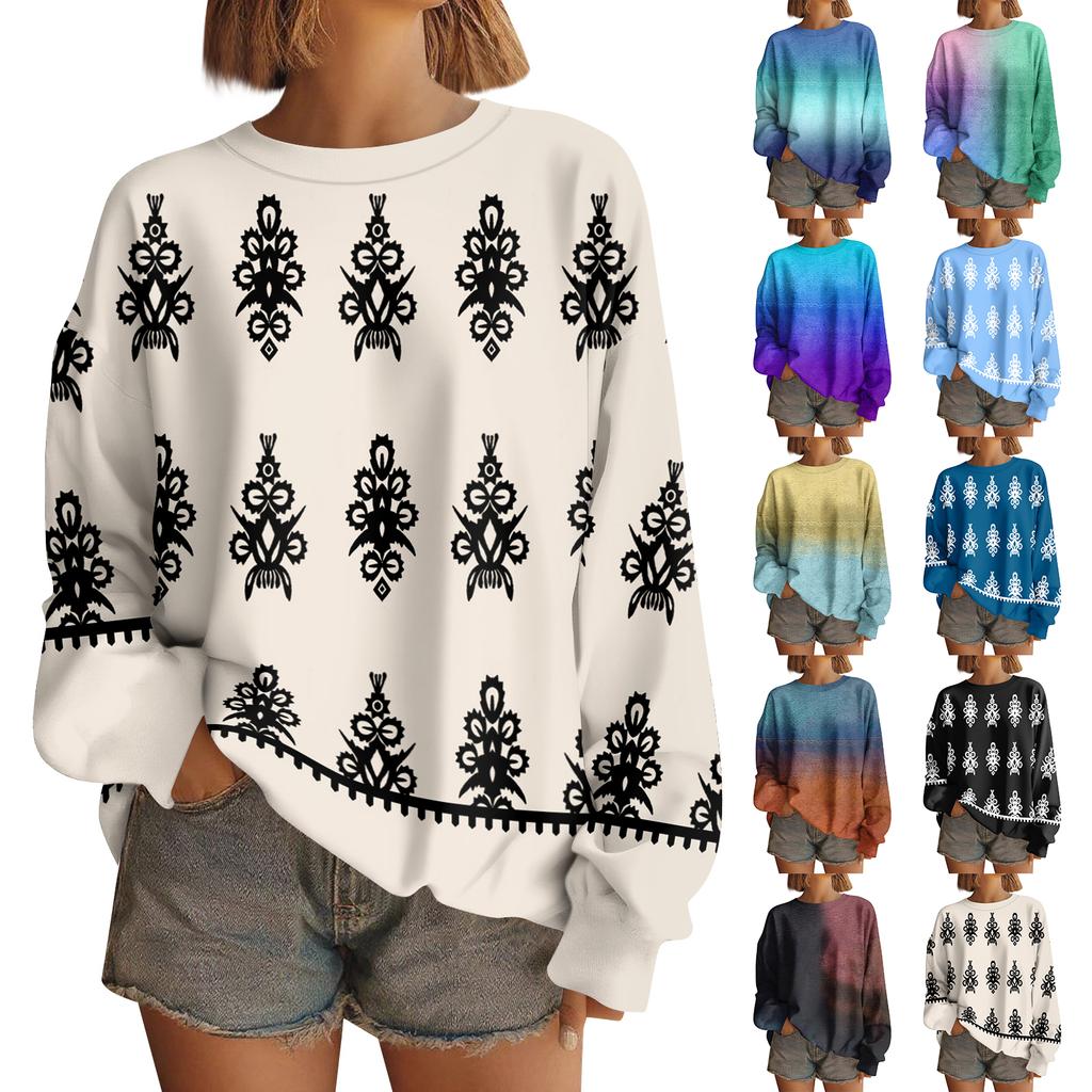 Женские топы Женский свитшот с длинным рукавом Повседневный с круглым вырезом Свободного кроя Пуловер Флисовые топы
