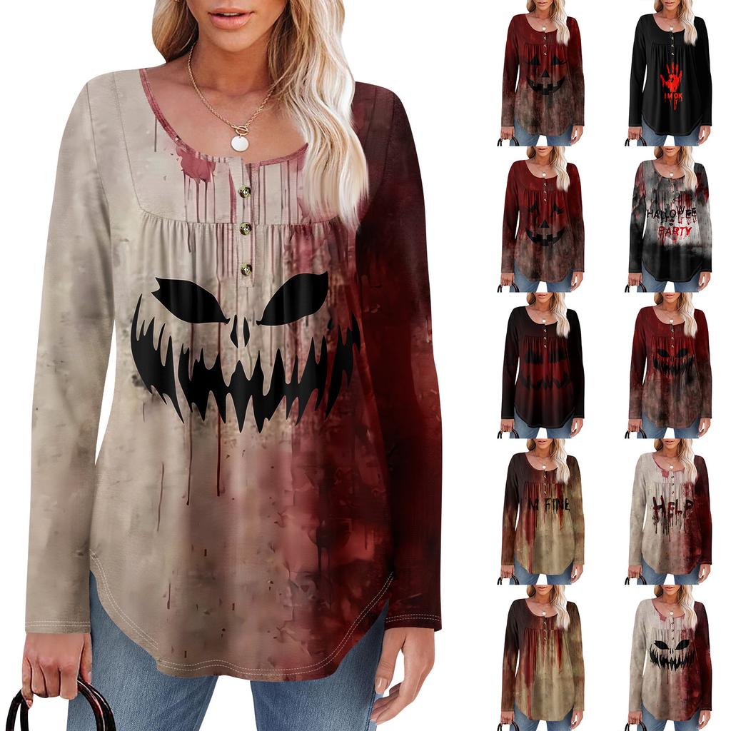 Женская туника с длинным рукавом, свободные топы, повседневные топы оверсайз, плиссированная туника, застегивающаяся на пуговицы, повседневные женские топы с принтом — купить товар онлайн с бесплатной доставкой по всему миру!