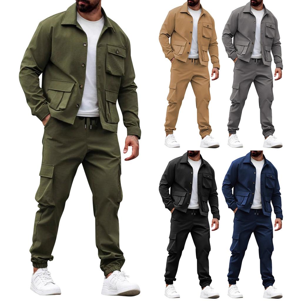 Мужская однотонная ретро рабочая куртка, брюки с несколькими карманами, модный прочный костюм — купить товар онлайн с бесплатной доставкой по всему миру!