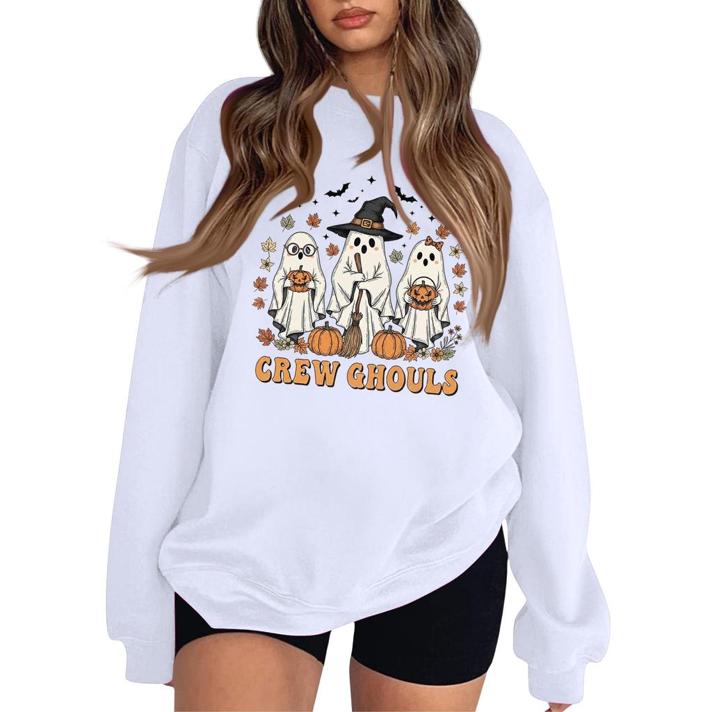 Женская модная толстовка с круглым вырезом и длинными рукавами на Хэллоуин с маленьким принтом