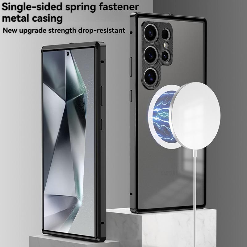 Магнитный чехол для Samsung Galaxy S25 Ultra S24 S23 Plus S25+ S24+ Magsafe Металлическая пружина Алюминиевый сплав Защита объектива Матовая задняя панель Бамперы для телефона — купить товар онлайн с бесплатной доставкой по всему миру!