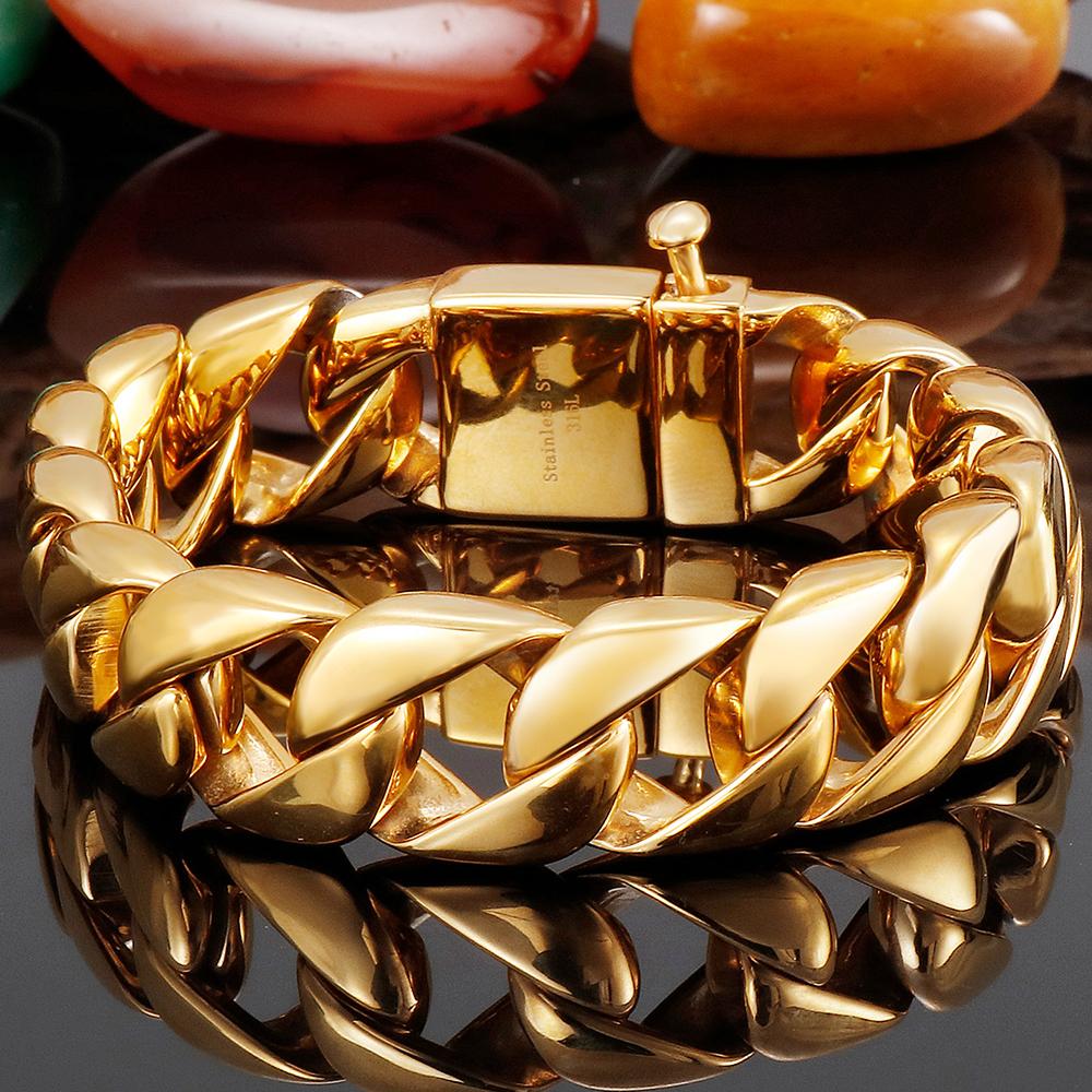 Роскошный мужской браслет из нержавеющей стали цвета золота, который никогда не тускнеет, с кубинским плетением, высоко полированный, модный мужской аксессуар в стиле хип-хоп — купить товар онлайн с бесплатной доставкой по всему миру!