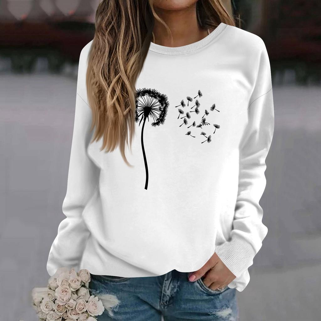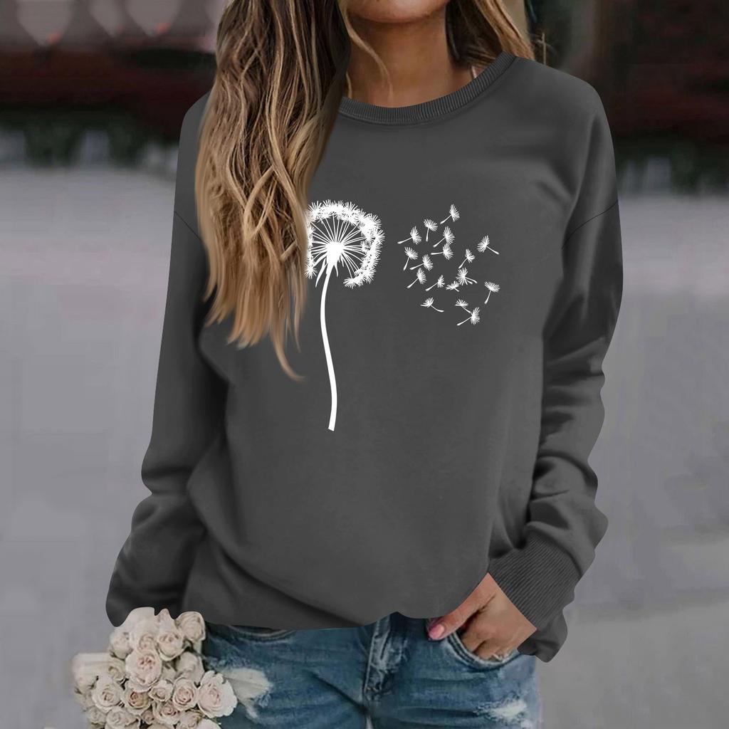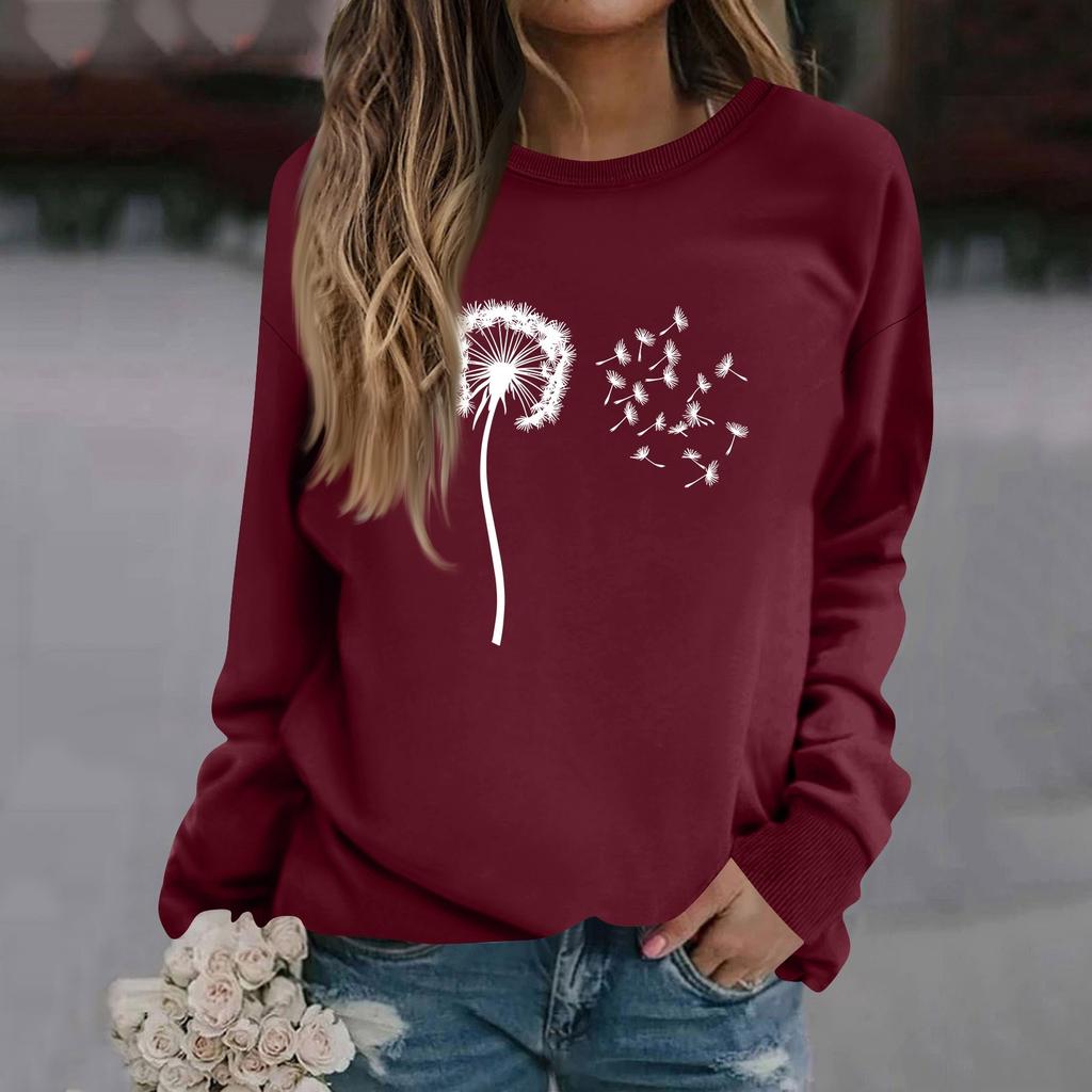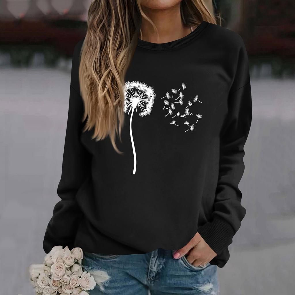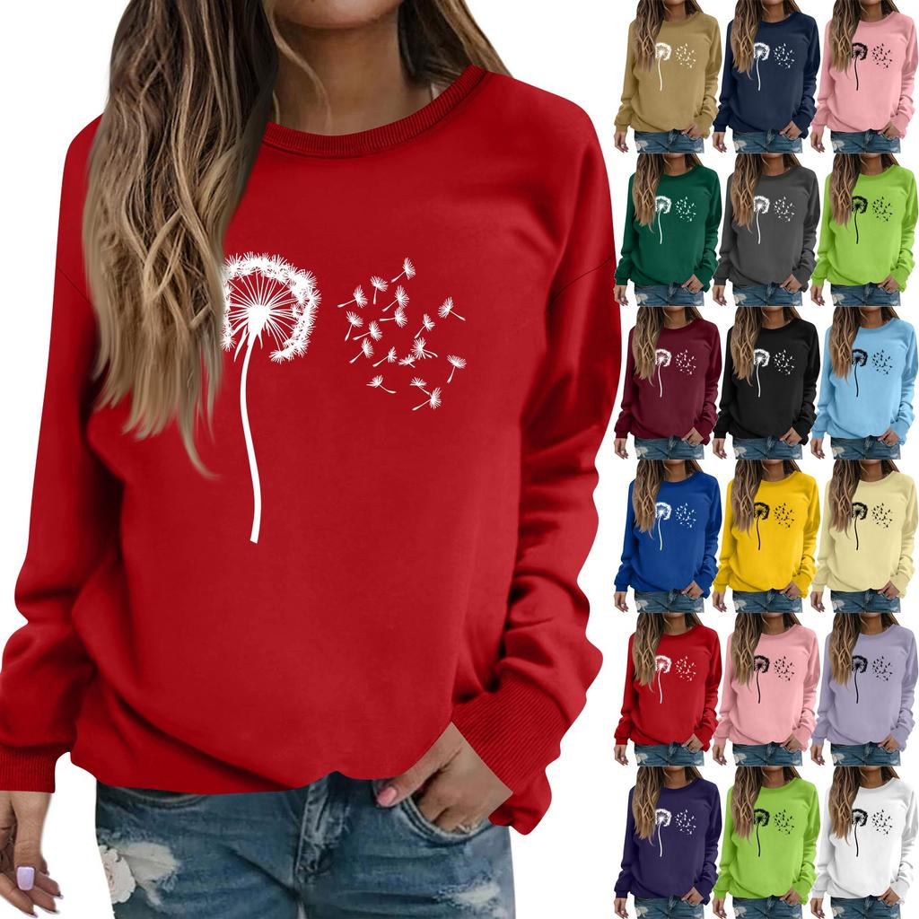 Женская модная повседневная толстовка с длинным рукавом и круглым вырезом с принтом