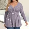 Женская рубашка большого размера с длинным рукавом, принт, плиссированный повседневный топ с V-образным вырезом