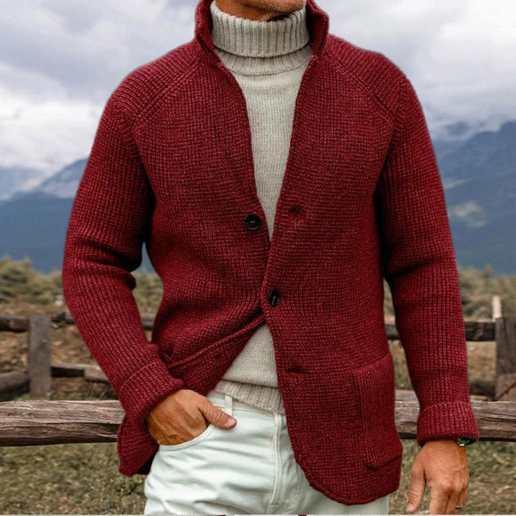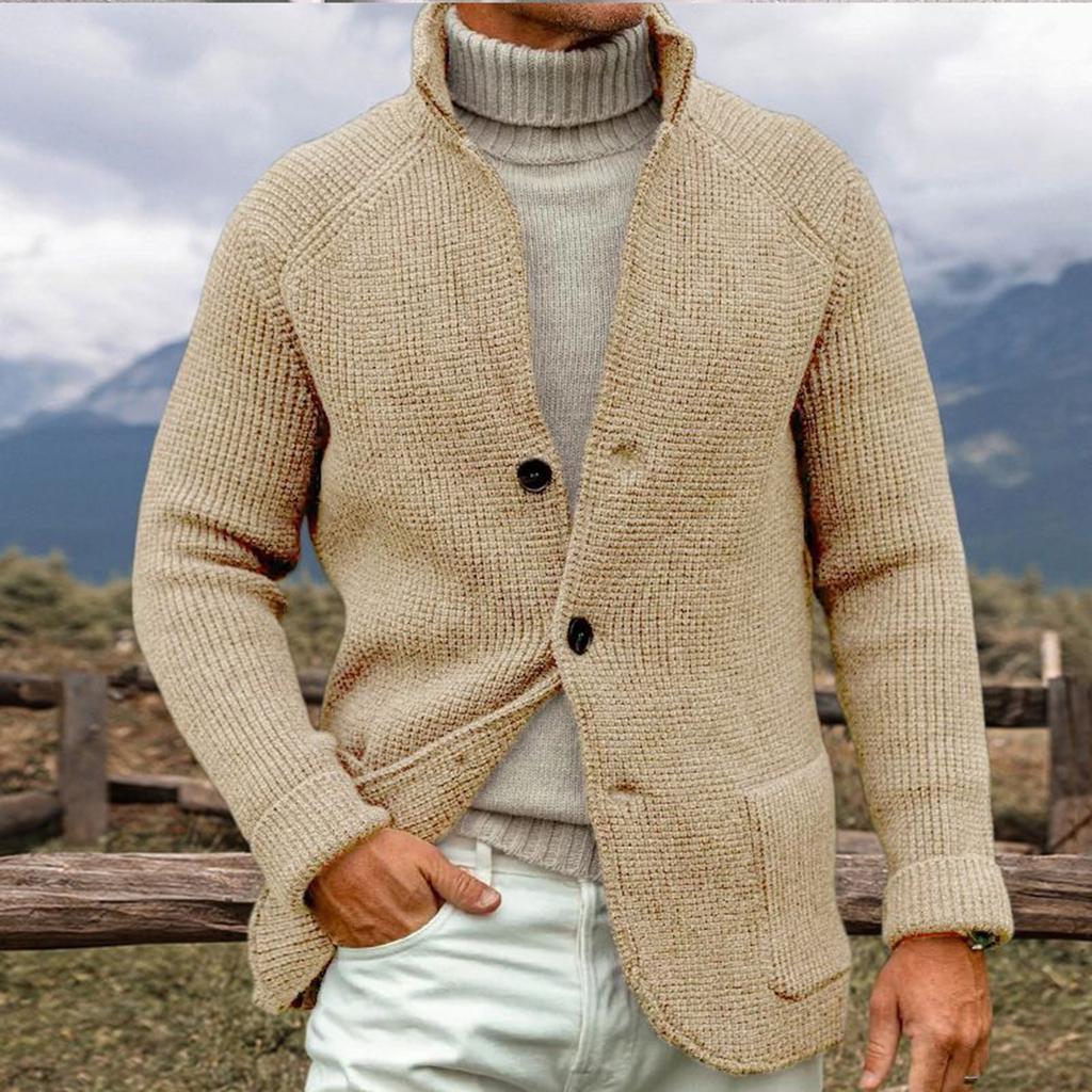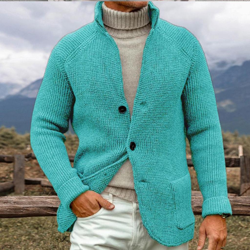 Мужской однотонный кардиган с вязаным воротником, верхняя одежда, повседневный свитер
