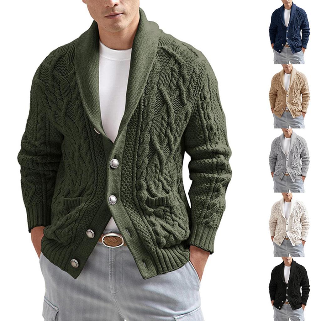 Мужской однотонный вязаный кардиган с длинным рукавом приталенного силуэта