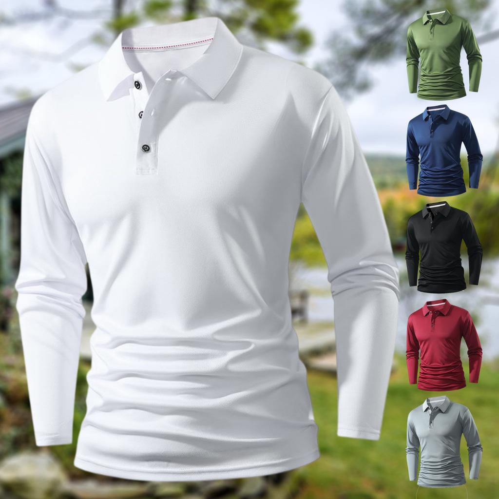 Мужская однотонная рубашка с лацканами, повседневная и деловая футболка с длинным рукавом на пуговицах
