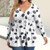 Женская рубашка большого размера с длинным рукавом, принт, плиссированный повседневный топ с V-образным вырезом