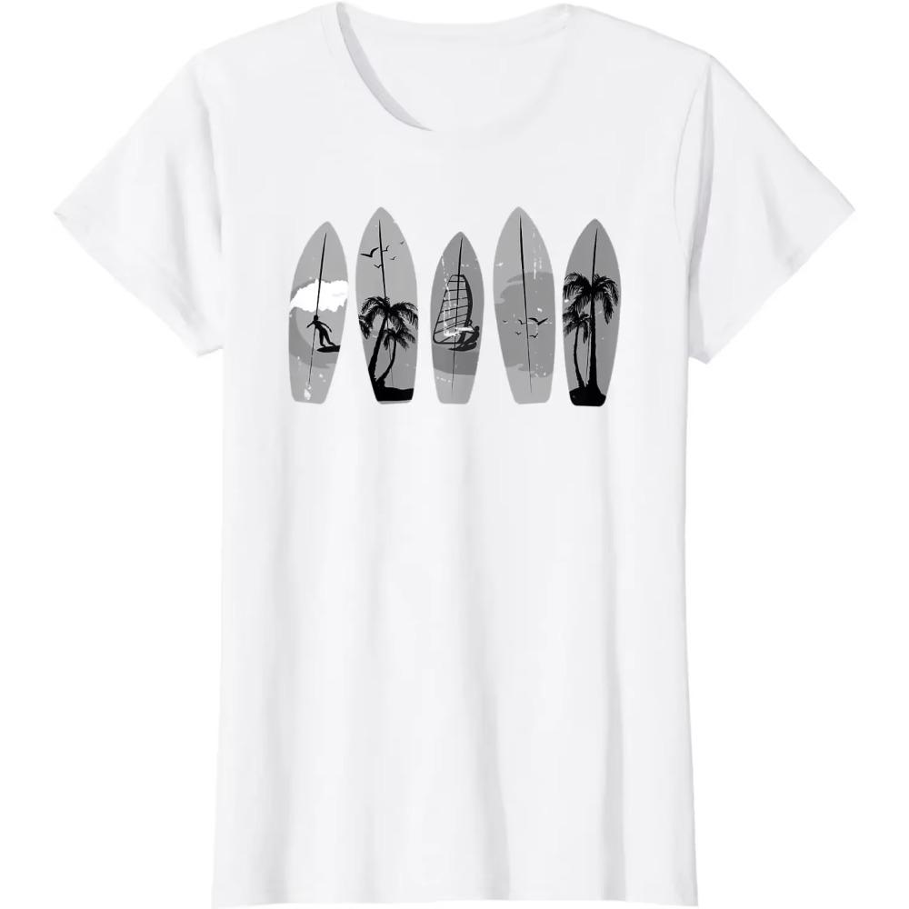 Серфинг Доска для серфинга Винтаж Классика Ретро Серфингист Футболка для серфингиста Футболки с графическим принтом Four Seasons Хомбре Эстетика Хлопок Повседневный