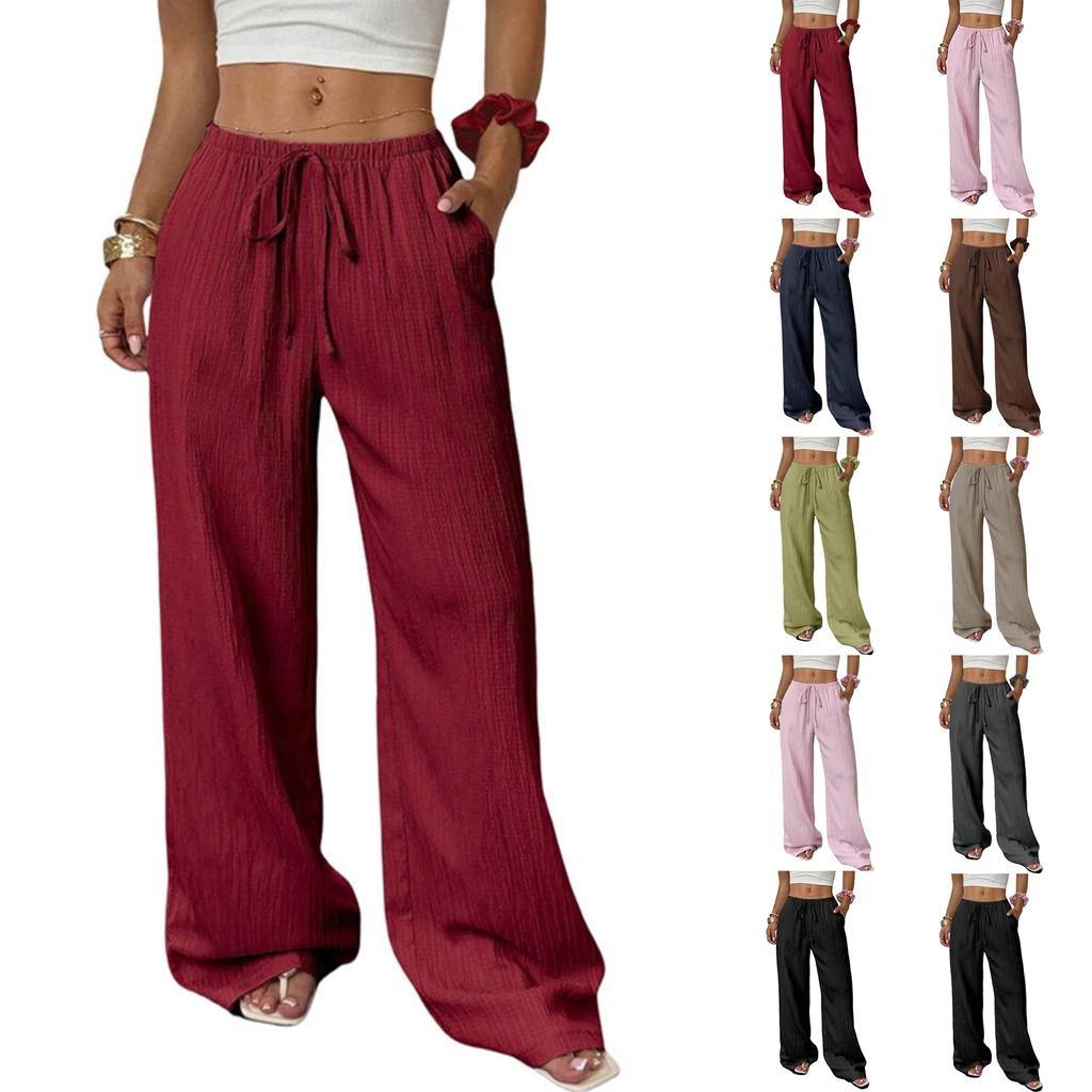 Модные женские универсальные брюки с кулиской, повседневные, однотонные, плиссированные, с широкими штанинами для женщин — купить товар онлайн с бесплатной доставкой по всему миру!