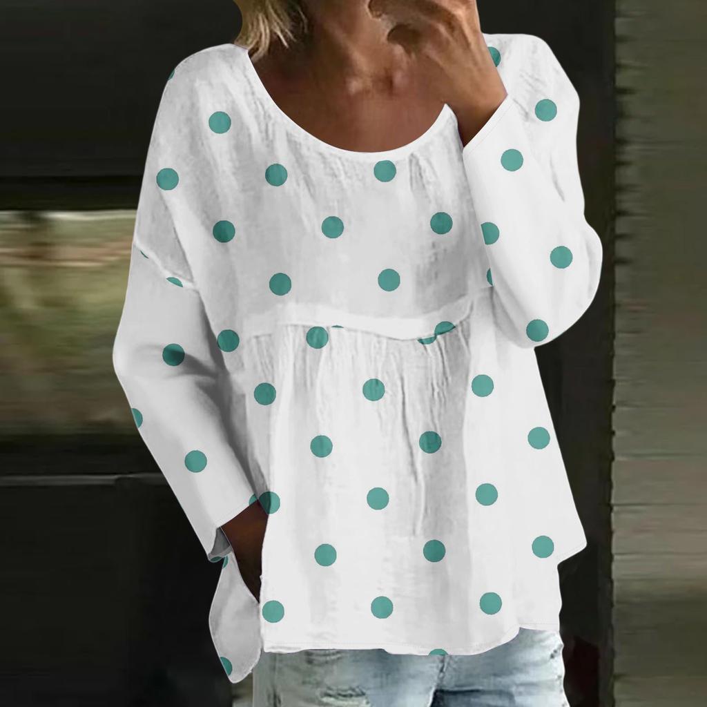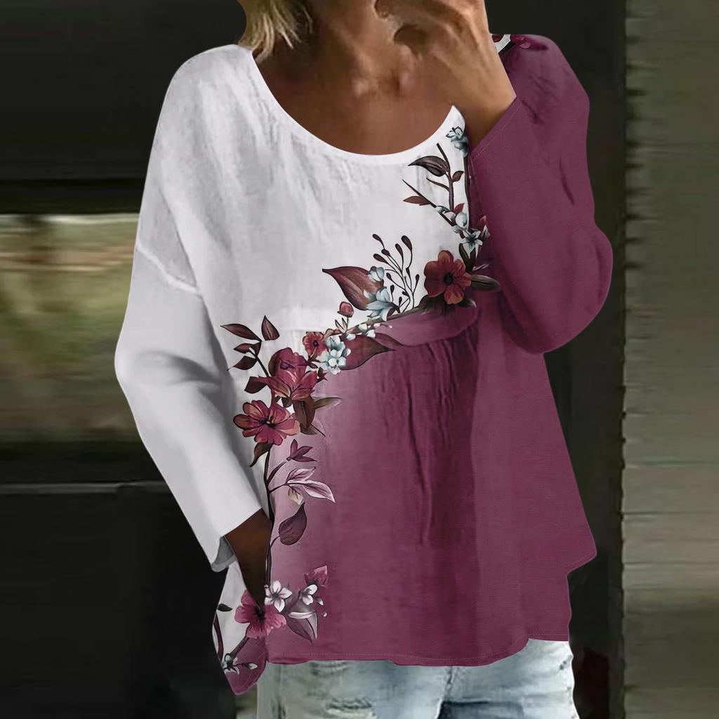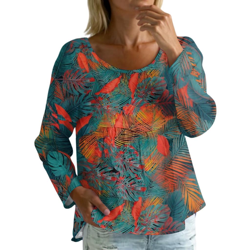 Женский повседневный модный свободный топ с круглым вырезом и цветочным принтом, с длинным рукавом