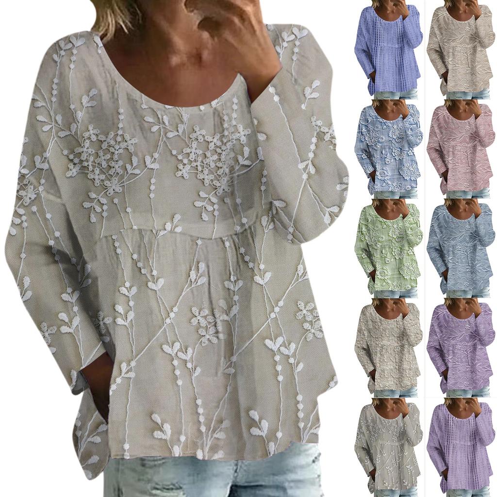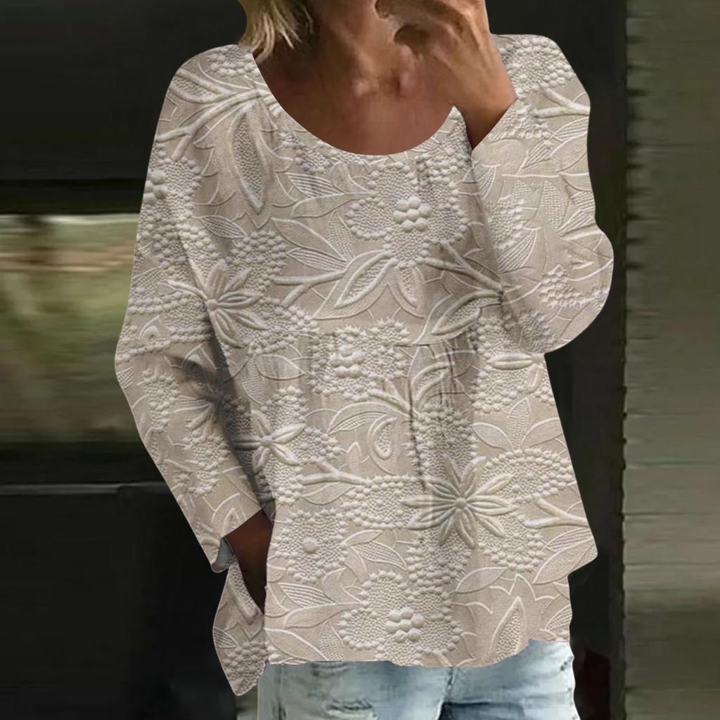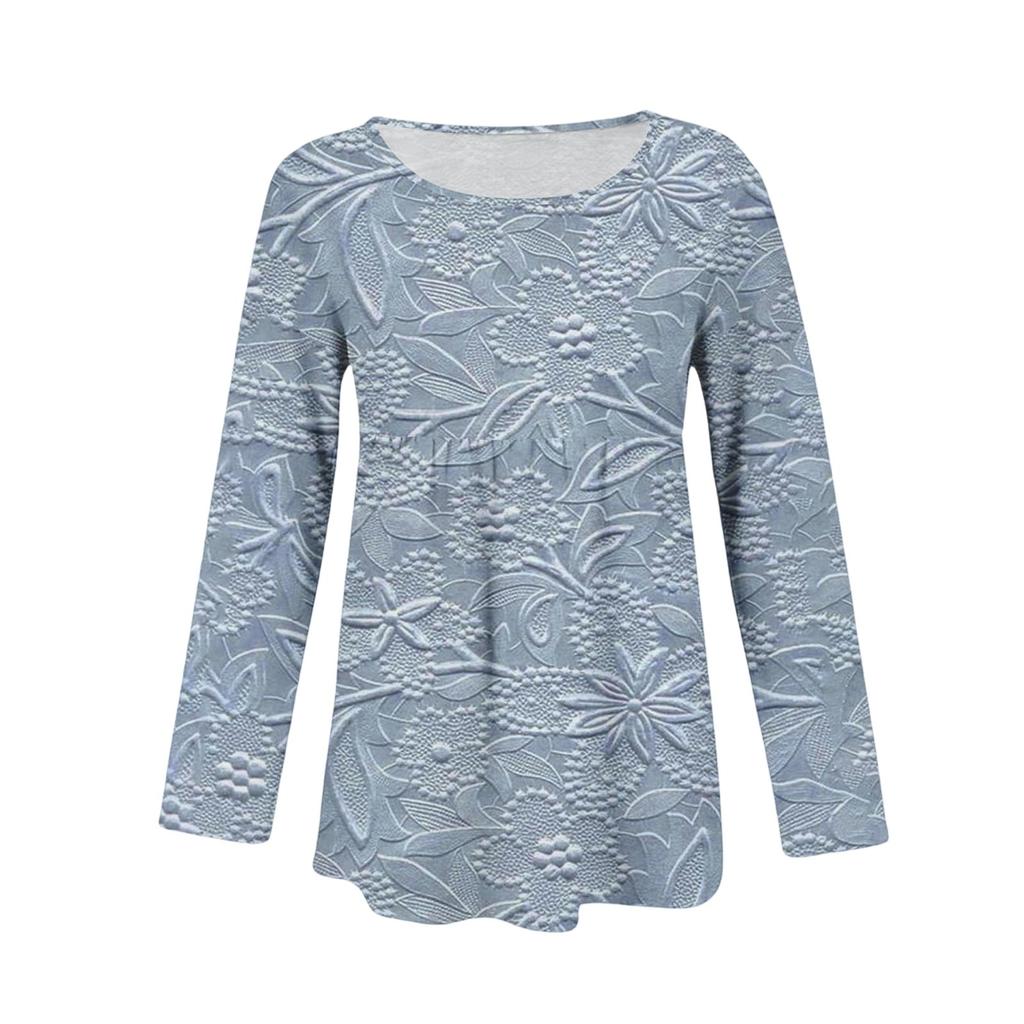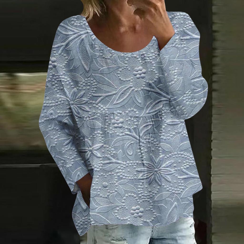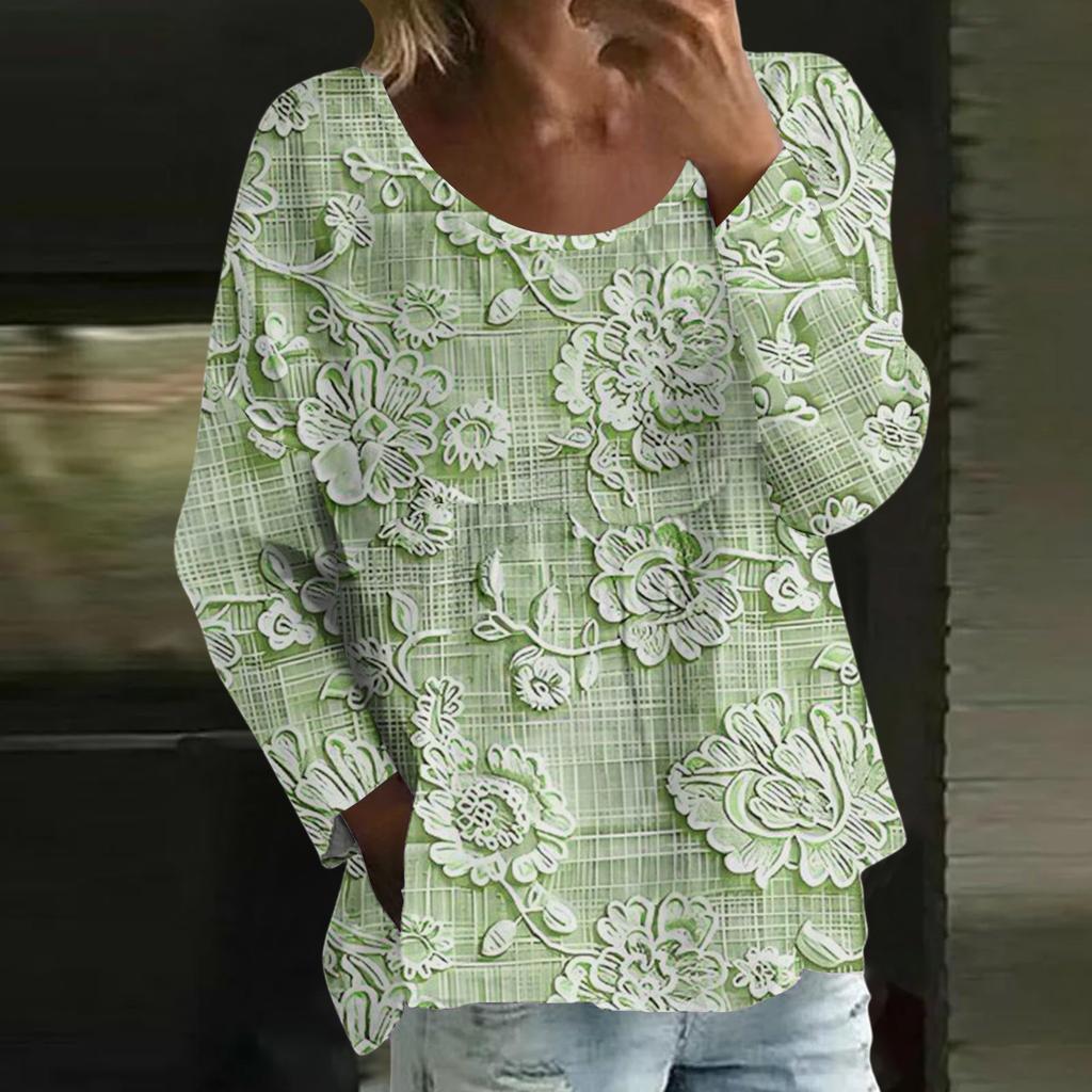 Женский повседневный модный свободный топ с круглым вырезом и цветочным принтом, с длинным рукавом