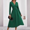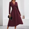 Женское модное однотонное платье с V-образным вырезом, длинными рукавами и плиссировкой — купить товар онлайн с бесплатной доставкой по всему миру!