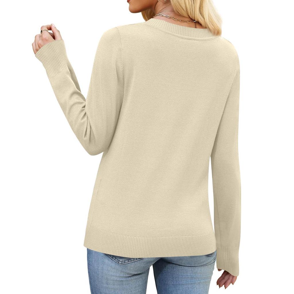 Женский модный повседневный топ с V-образным вырезом, однотонный, с длинным рукавом