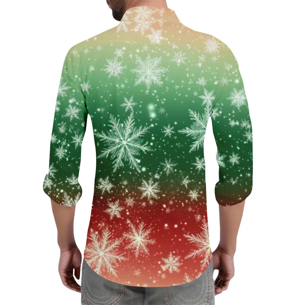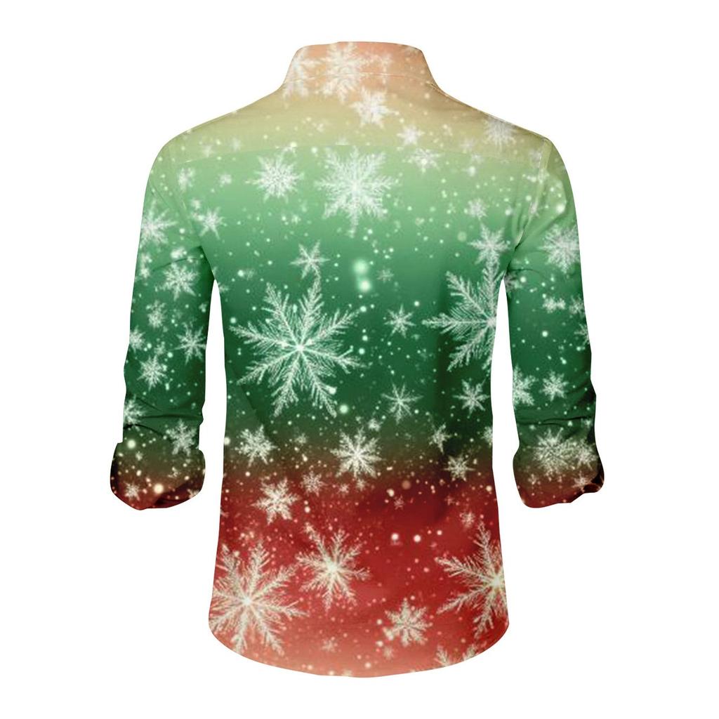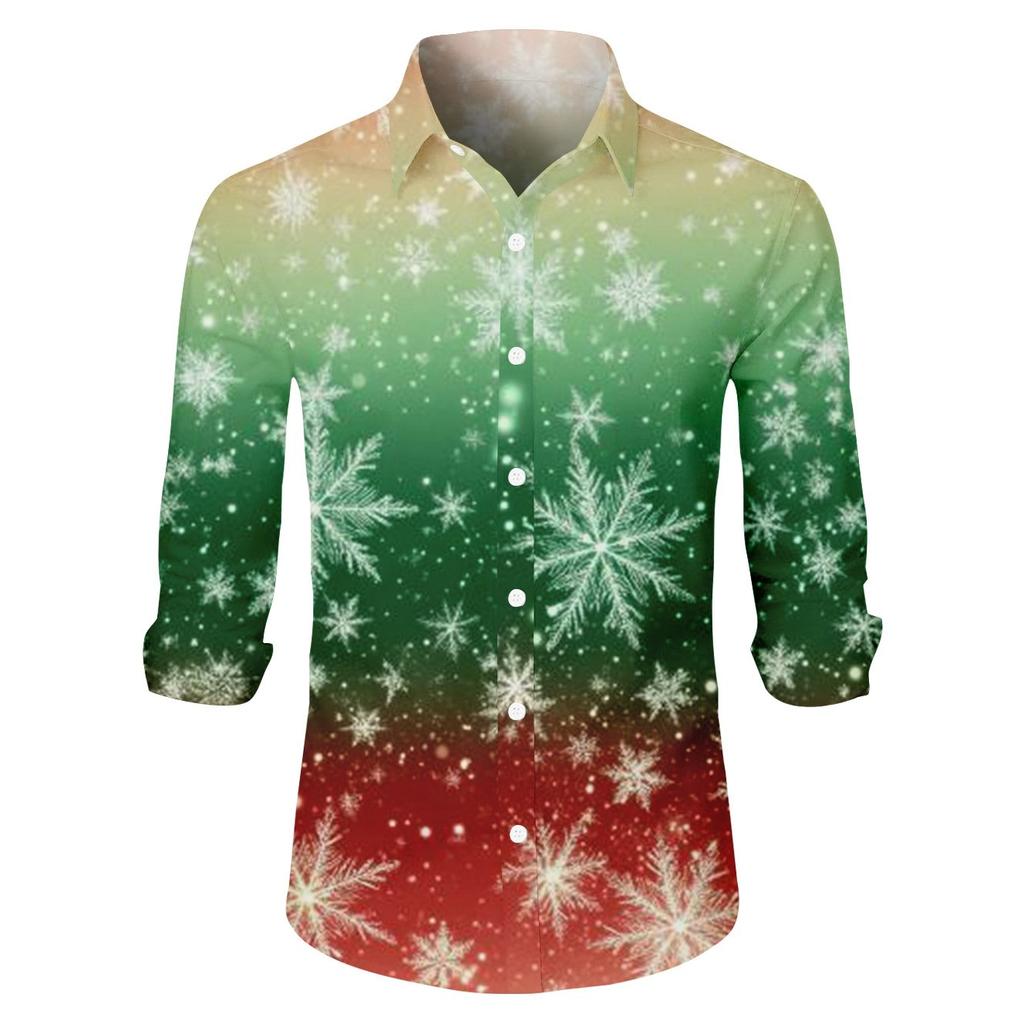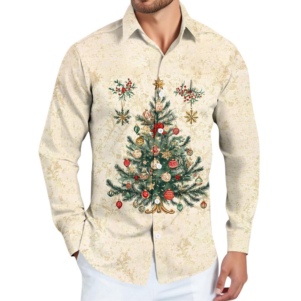 Мужская рождественская рубашка с рождественским принтом, с длинным рукавом, на пуговицах