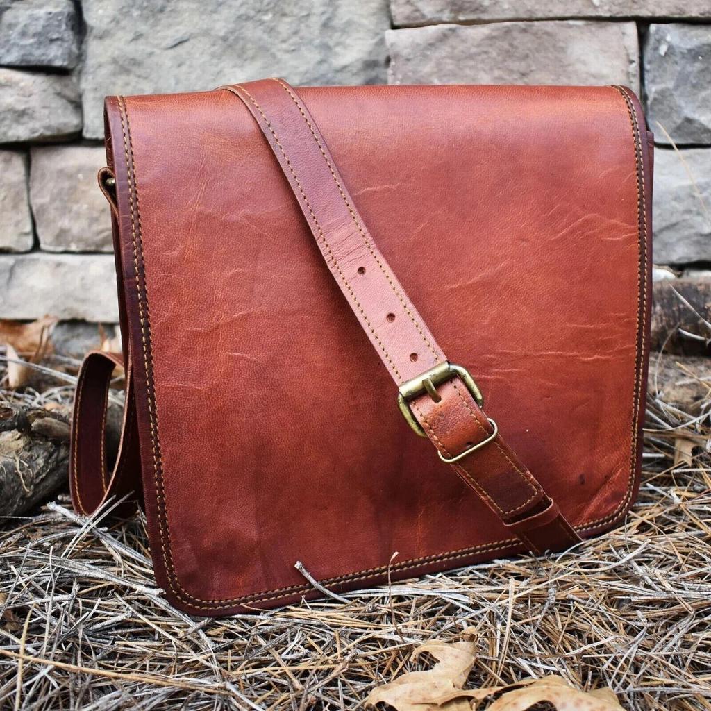 Сумка-портфель ручной работы, мужская, большая, кожаная, винтажная, для ноутбука, мессенджер
