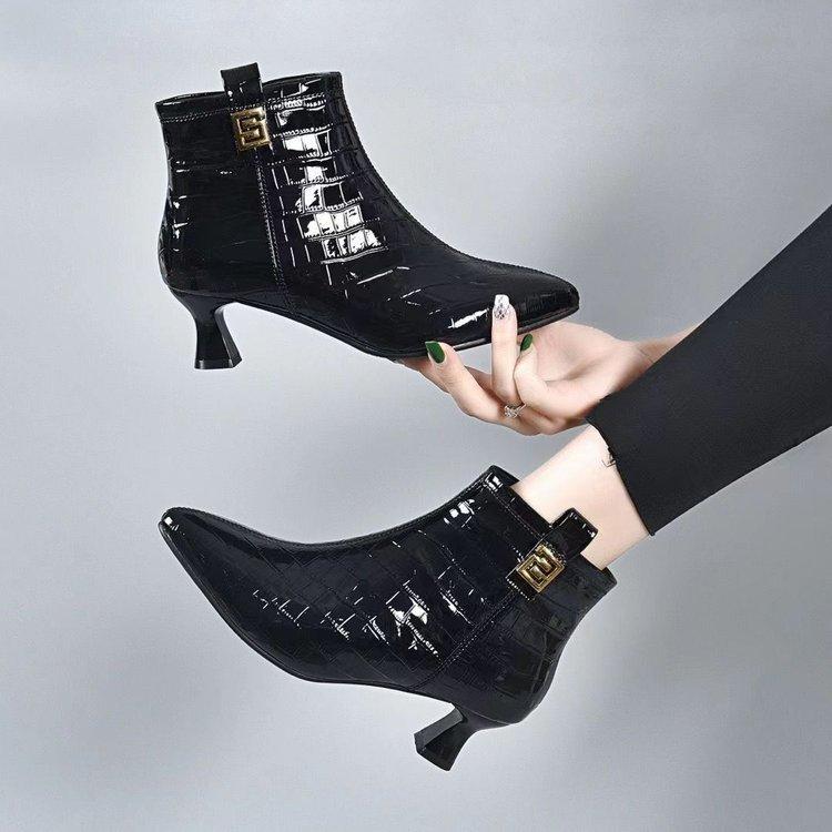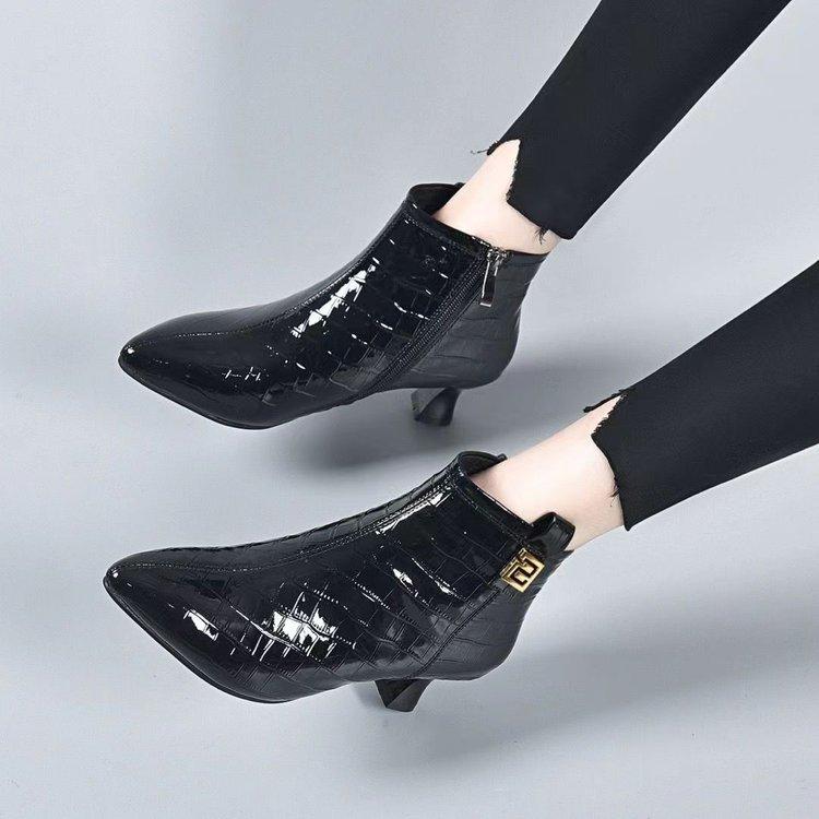 Котенок и короткие ботинки женские мягкая кожа тонкие каблуки острый носок ботильоны женские осенне-зимние бархатные модные ботинки женские низкий каблук