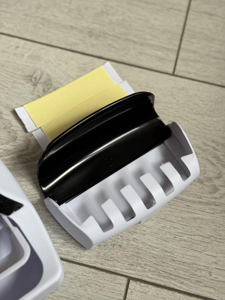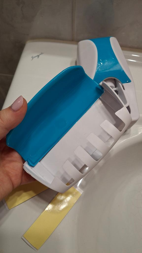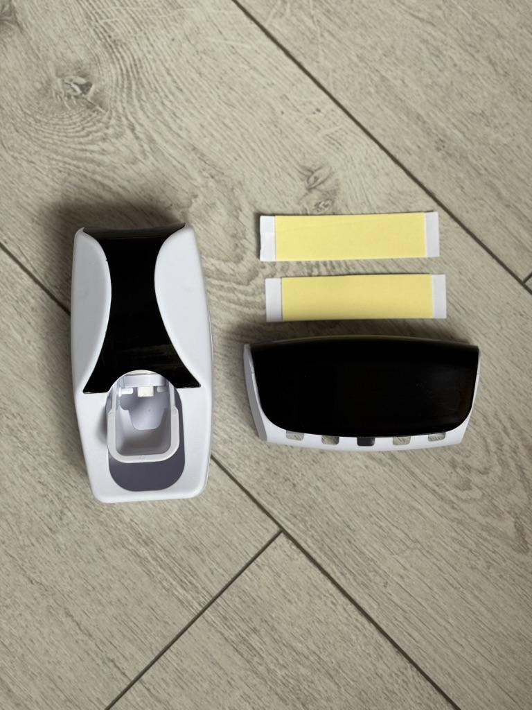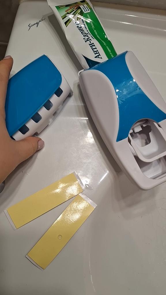 Автоматический дозатор зубной пасты с держателем для зубных щеток 👍 Это настенное устройство, которое дозирует зубную пасту одним нажатием зубной щетки на внутренний рычаг. Держатель предназначен для хранения до пяти зубных щеток, обеспечивая гигиеничное и организованное решение для ванной комнаты. Устройство работает по вакуумной технологии, не требуя батареек. Изделие помогает предотвратить беспорядок и минимизировать расход зубной пасты. Обычно оно изготовлено из пластика (ABS) и крепится с помощью двусторонних наклеек. Доставка около месяца. Трек-номер отслеживался. К покупке рекомендую 👍