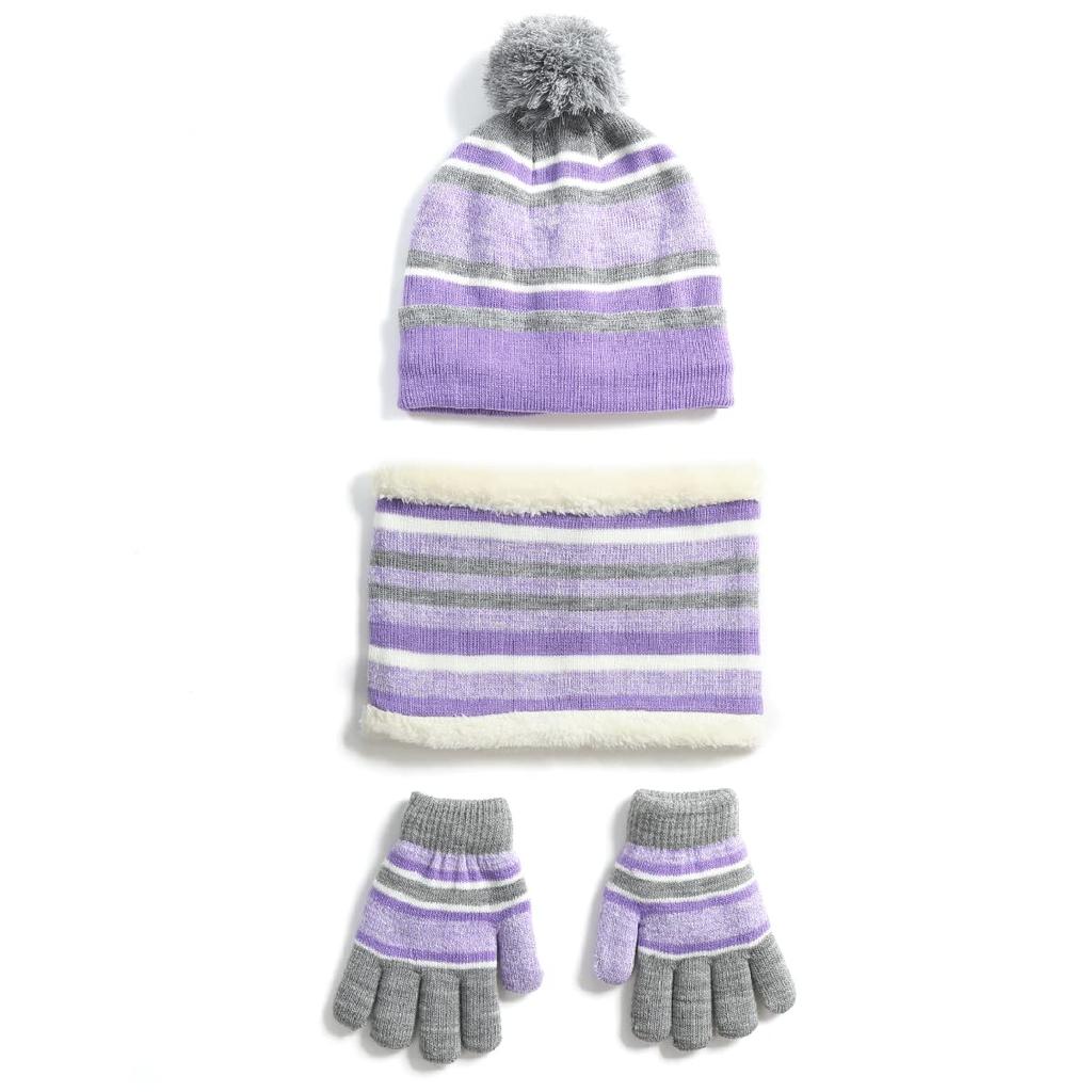 Набор вязаных шапки, шарфа и перчаток TRIWONDER для идеального отдыха на открытом воздухе и путешествий, фиолетовый флис, 3 предмета, шапка, шарф, перчатки, для мальчиков, зима, катание на лыжах, сноуборде, велоспорт,