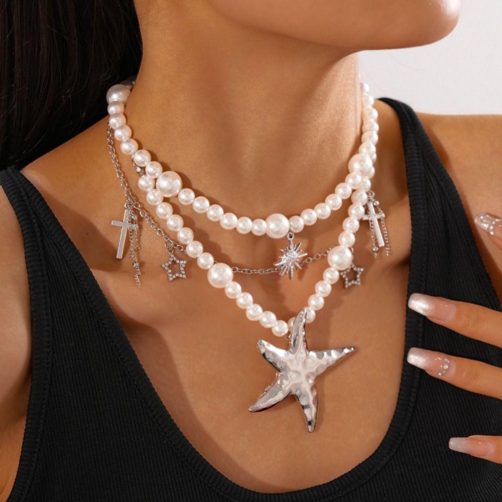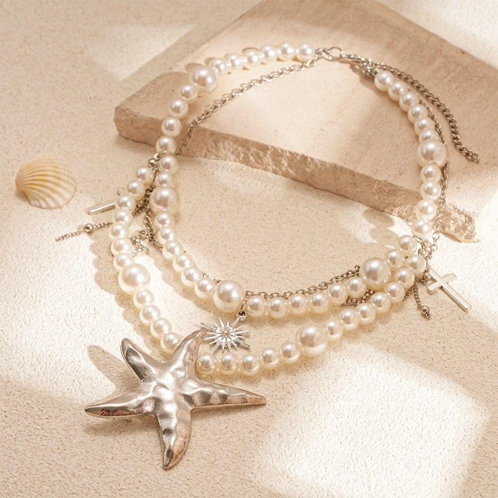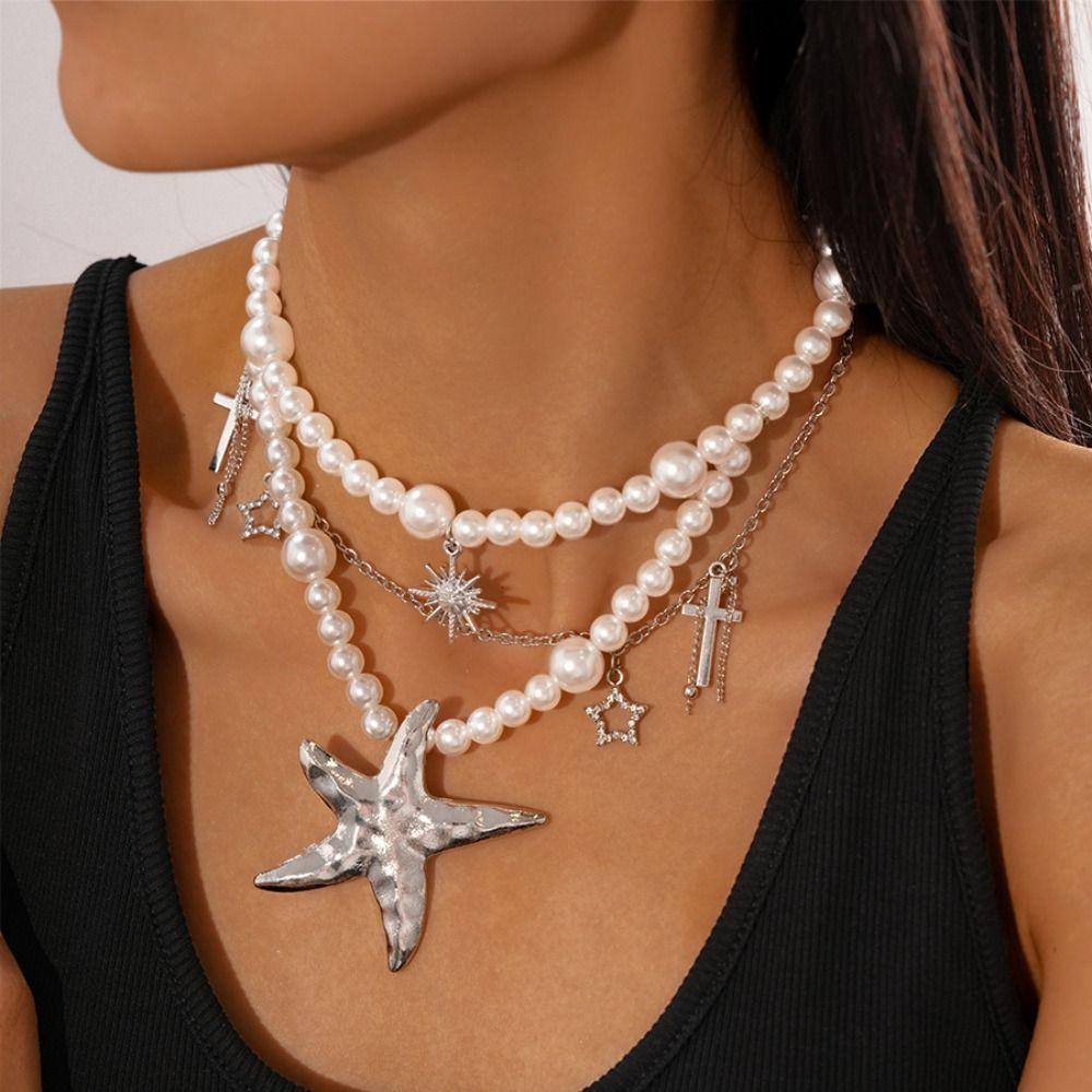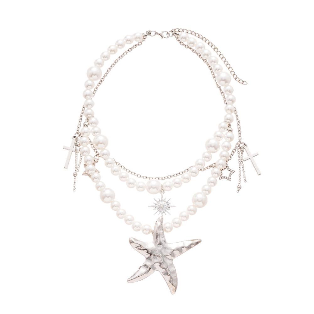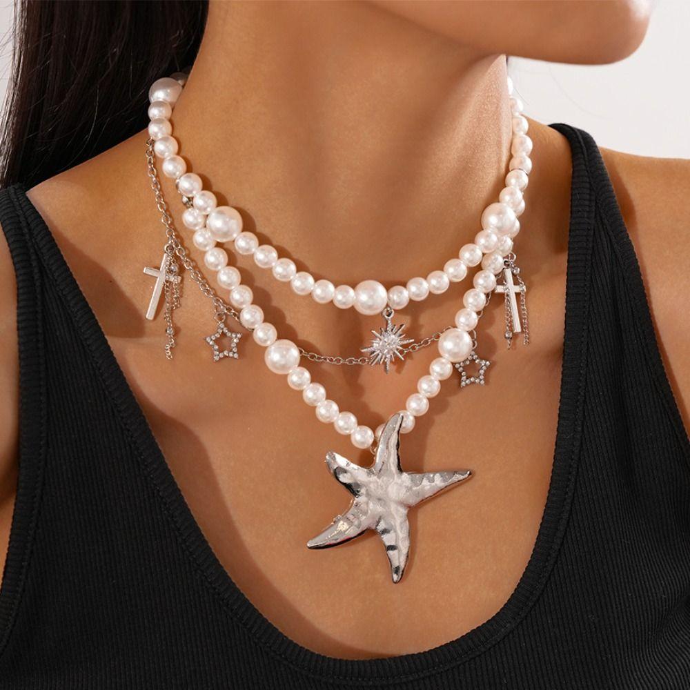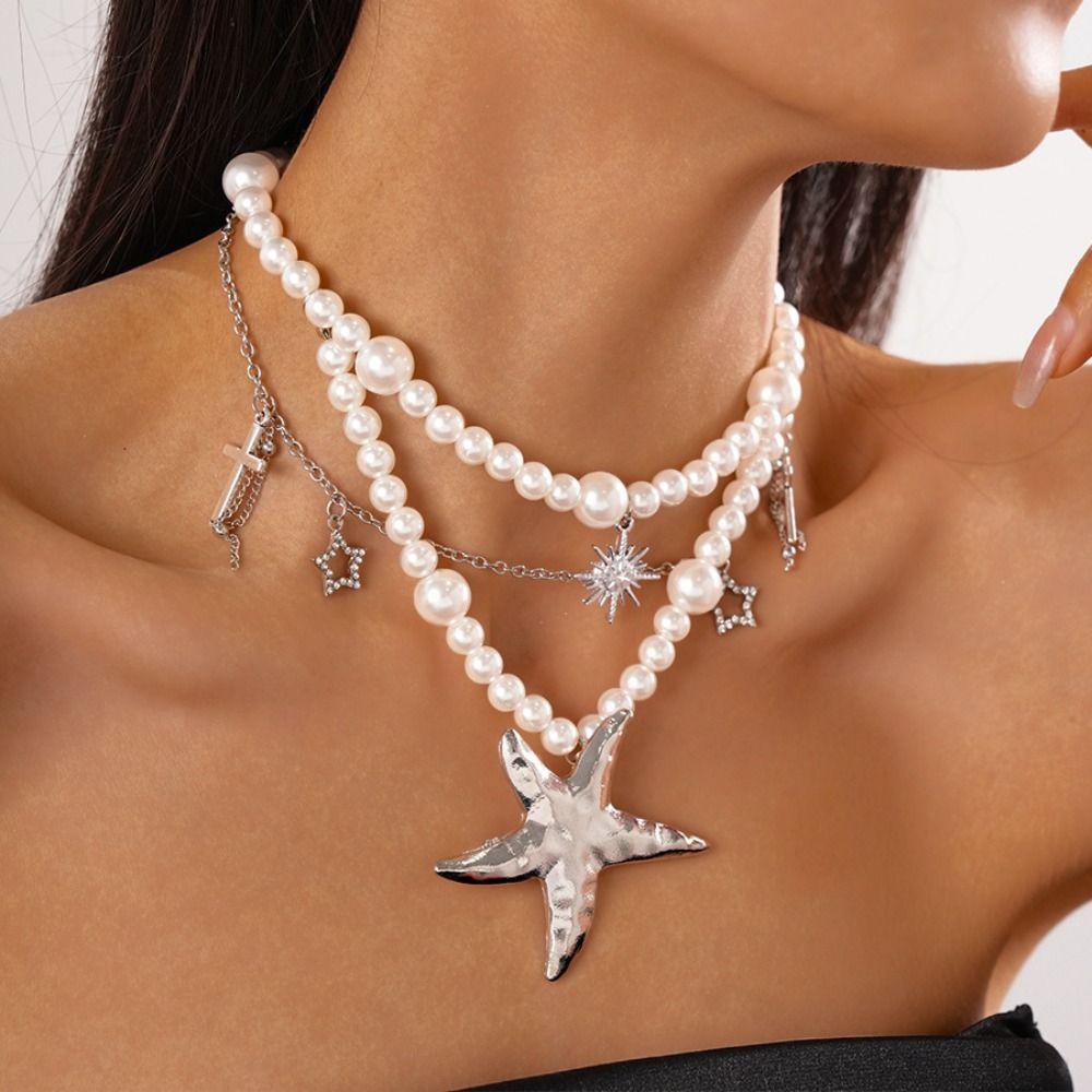 Жемчужное ожерелье с бисером, двухслойное пляжное ожерелье, ювелирное изделие, чокер с кулоном в виде морской звезды, женское